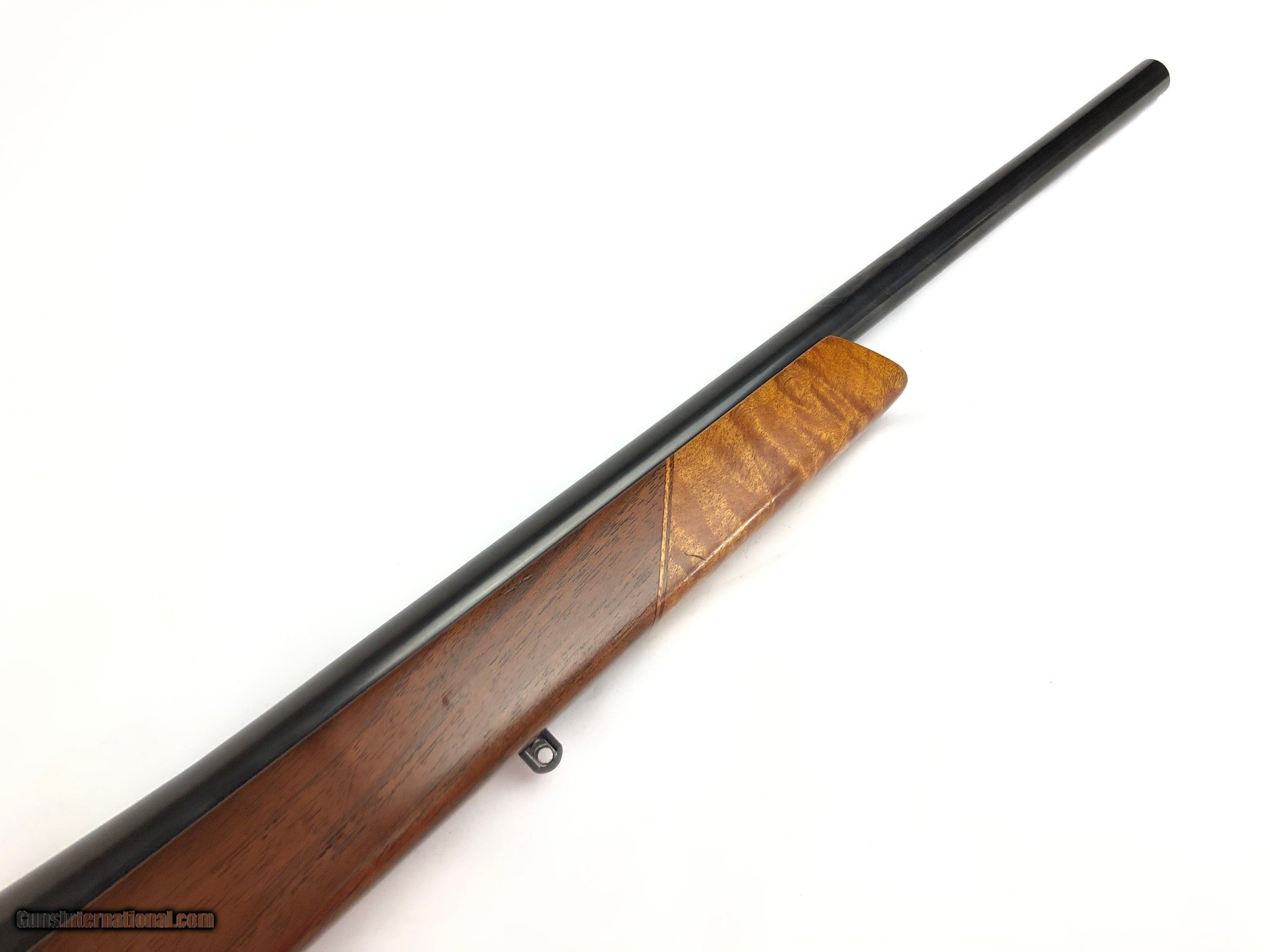 Description: Remington 600 chambered in .35 Rem with a 18.5" barrel Overall length is approximately 37-1/4" LOP is approximately 13-3/4" Superb custom job on this old Remington 600! Simple takedown by pushing up the latch and unscrewing the barrel. Precision threaded for a perfect fit. Absolutely wonderful work, unknown gunsmith. It is signed with a heart trademark on the right side of the barrel. Beautiful custom stock is in great condition, with only minor blemishes. No cracks. Beautiful blonde accents at the forearm tip and knob. Bluing is in good condition with most remaining. Bore is in good condition, with lots of rifling remaining. Gun functions correctly, it is mechanically sound. This gun will require an FFL for transfer due to the customization it is not C&R eligible. SHIPPING CHARGES ($25) INCLUDE A TRACKING NUMBER & INSURANCE FOR THE FULL SOLD VALUE SOLD Manufacturer: Remington Model: 600 Serial Number: 5338 Caliber Info: .35 Remington Action: Bolt |