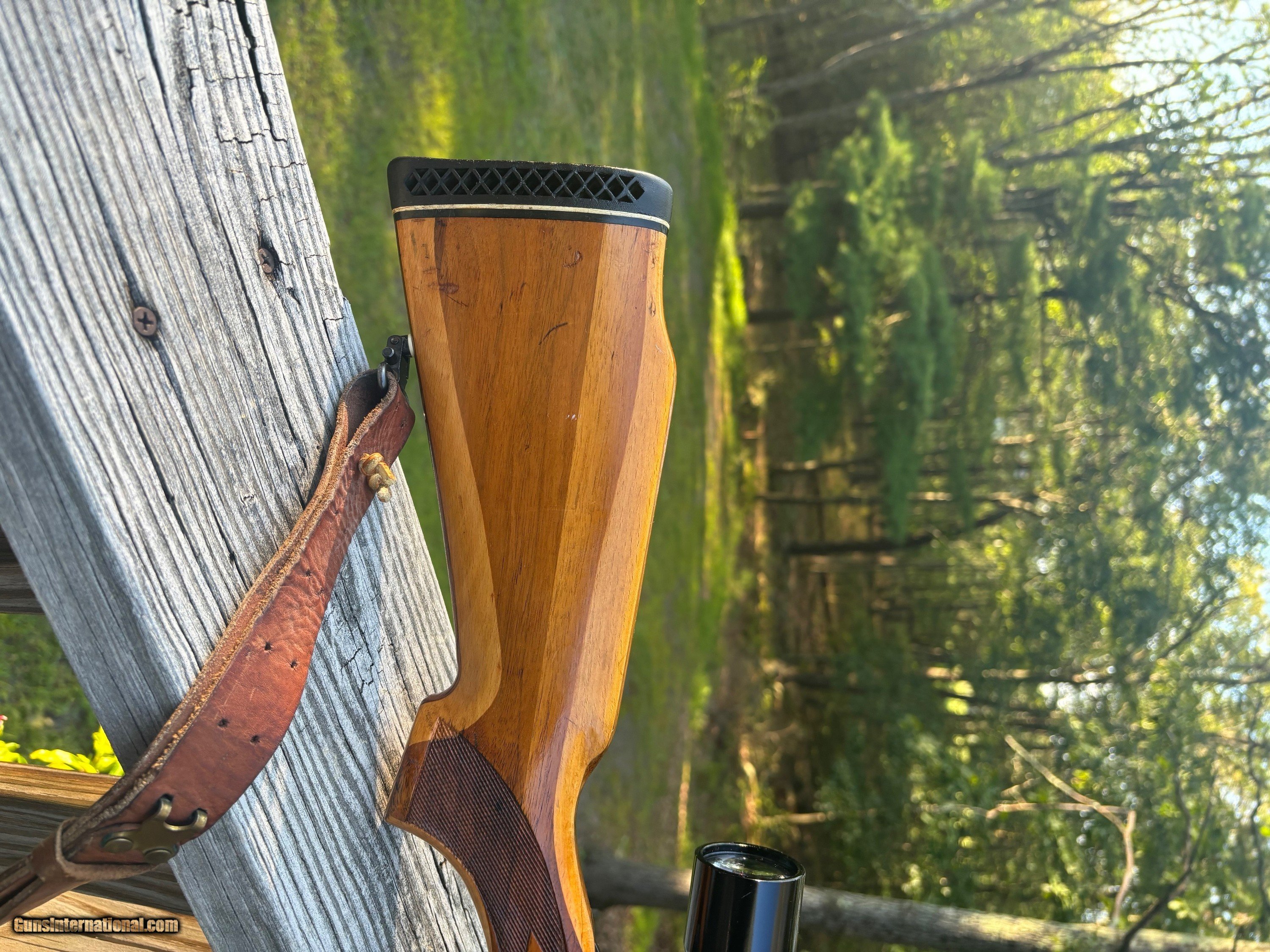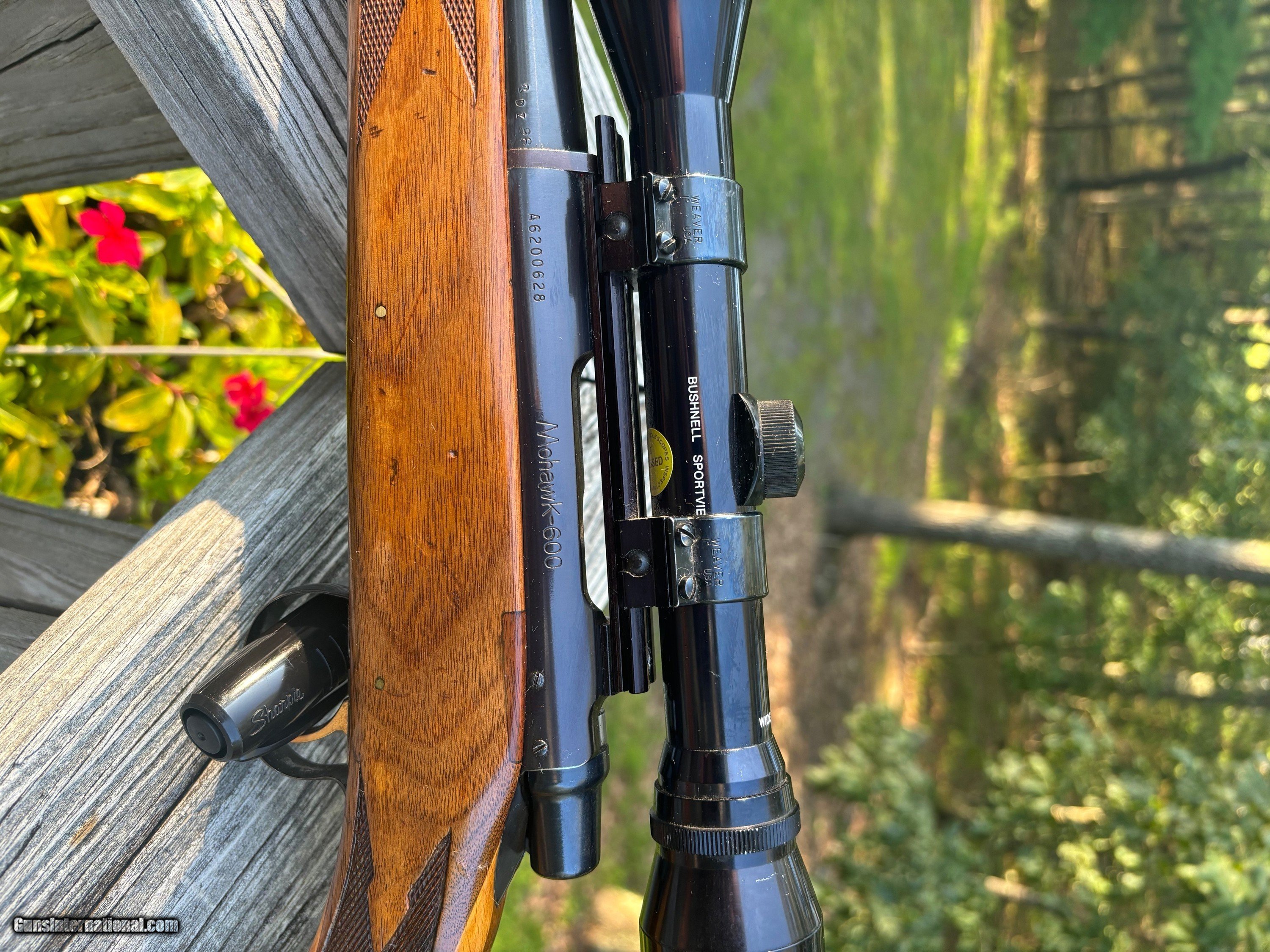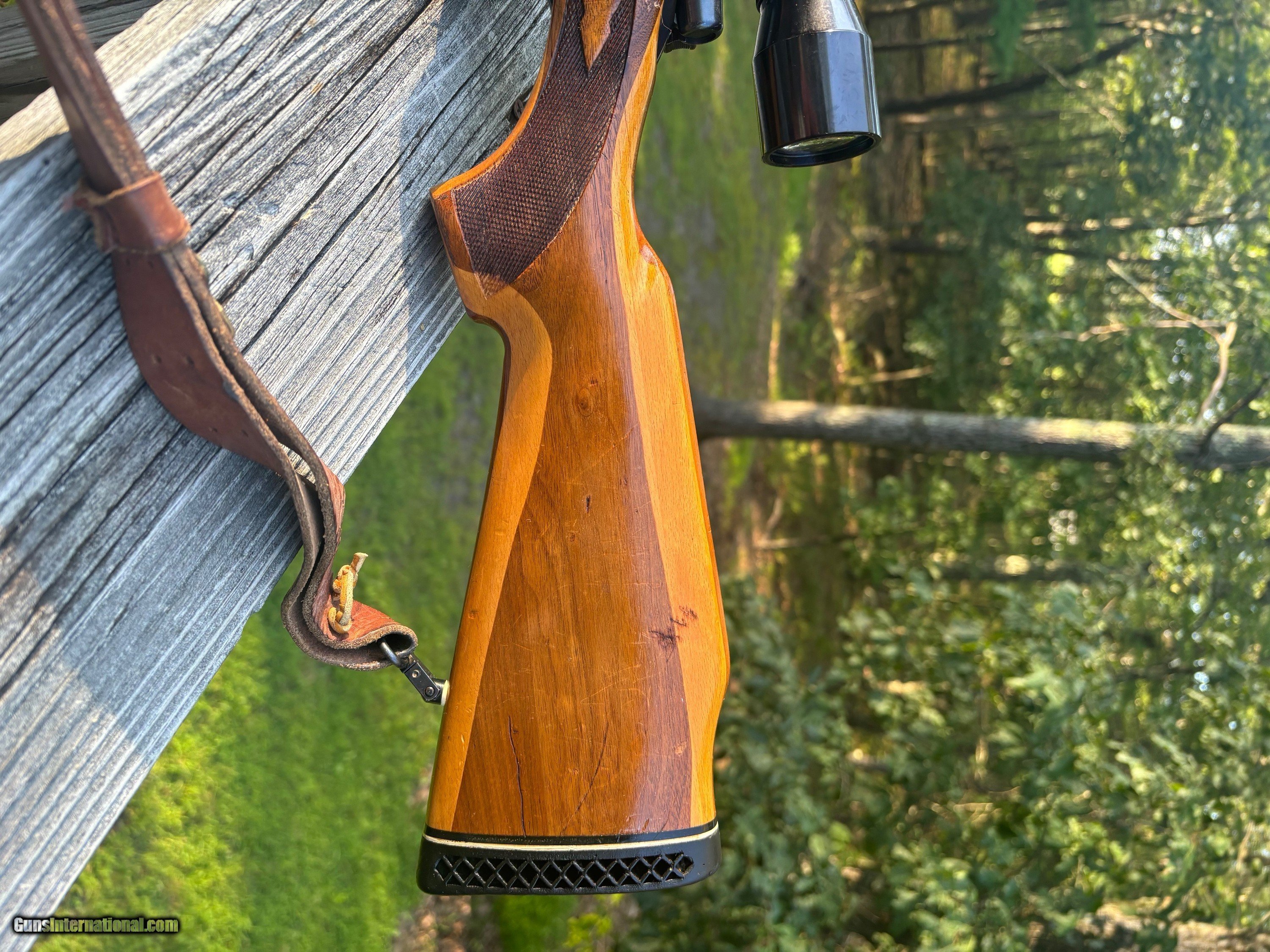 Description: Here's a Remington 600 Mohawk .308 that has been placed in a Magnum stock. This rifle will make a great shooter. The metal is very good with some handling marks. The bore is very good. The stock is very good with handling marks. The dogleg bolt has been replaced. Comes with an aftermarket trigger guard. Please ask questions prior to purchasing. Please make sure sure that your FFL Dealer will accept this weapon from a NON FFL DEALER. Postal Money Order will be the method of payment. SOLD |