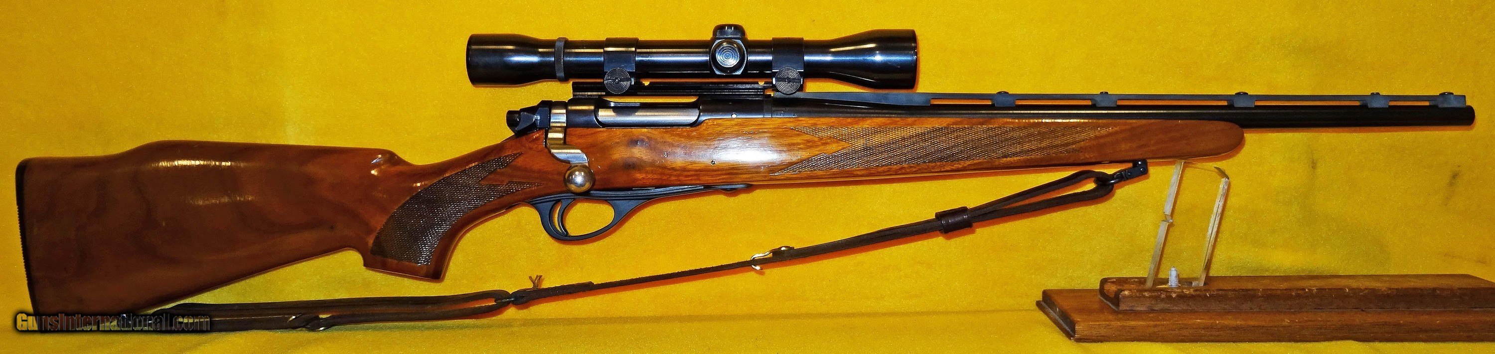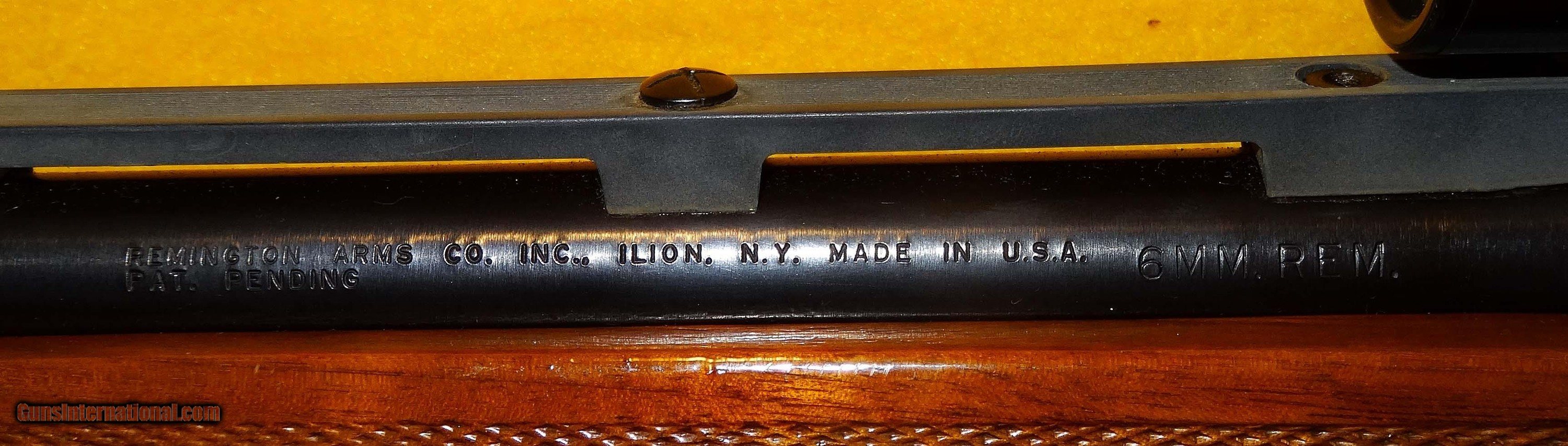 Description: REMINGTON 600 IN 6MM CAL., WITH 19" BARREL. COLOR BLUE. CONDITION 95%+. SERIAL NUMBER 30854. REMINGTON MODEL 600, COMES WITH A WEAVER K4 SCOPE AND RINGS, BRIGHT SHINY BORE, WOOD EXCELLENT, FINISH EXCELLENT, RIB HAS HAD SOME SCREWS REPLACED, PLASTIC TRIGGER GUARD HAS SOME DROOP, 95%+ OVERALL CONDITION, OUR STOCK # D1081. SOLD |