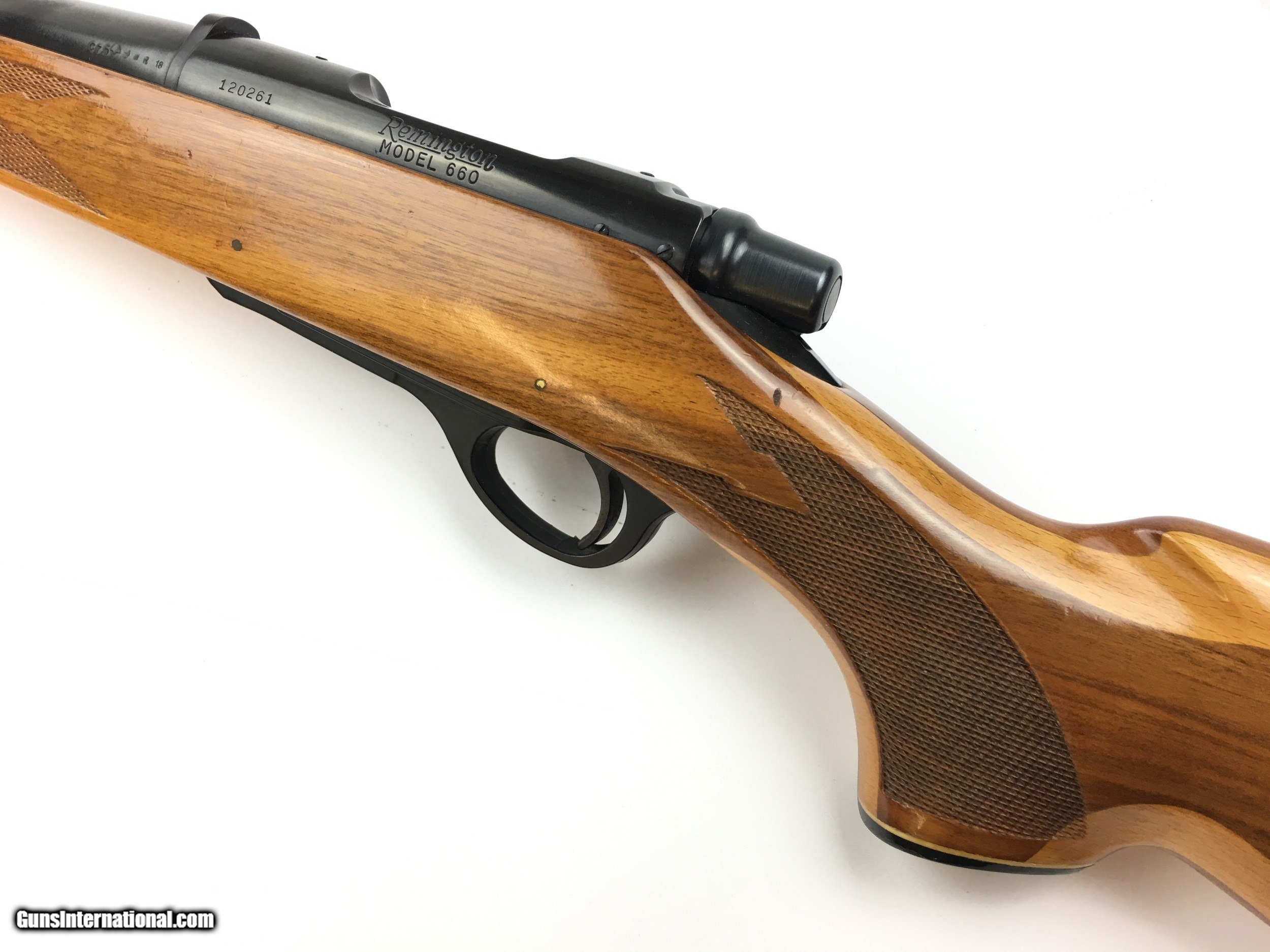 Description: This is a great piece of history here! The Remington 660 is a favorite among shooters all over America! Laminated wood stock is a medium & blonde brown and has nice coloration. Stock is in good condition, only minor surface blemishes Bluing is in good condition, left side of the barrel has some light freckling and bluing loss. Bore is in good condition, bright and shiny, with good strong rifling. Gun functions correctly, it is mechanically sound. Remington 660 chambered in 6.5 Rem Mag with a 20" barrel Overall length is approximately 38-1/2" LOP is approximately 13-1/2" THIS GUN WILL REQUIRE AN FFL FOR TRANSFER. SHIPPING CHARGES ($30) INCLUDE A TRACKING NUMBER & INSURANCE FOR THE FULL SOLD VALUE If paying with paypal, please include your ITEM NUMBER only and no other description. (Add 3% to the total purchase as loss of discount if using paypal)