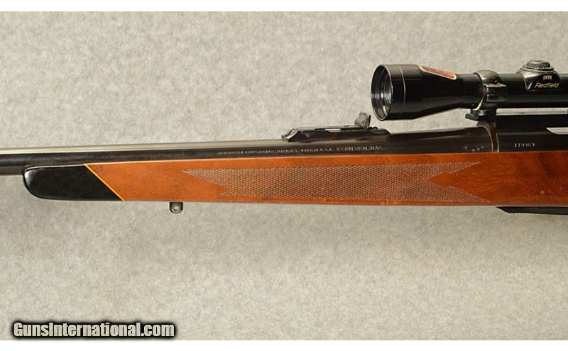 Description: Sales Tax on Gun Library Online Orders Cabela's Gun Library Online is a part of Cabela's Retail, Inc. Any purchase from the Gun Library Online will be subject to sales tax if shipment is made to a state in which Cabela's Retail, Inc has an active physical presence. Sales taxes will be charged based on the state and local sales-tax rates where the gun is delivered. SOLD Manufacturer: 1968 Caliber Info: 6.5 Rem Mag Metal Condition: Excellent Wood Condition: Very Good-Excellent, few use marks Bore Condition: Excellent Barrels: 20 Triggers: Serrated Stock: Checkered wood laminate pistol grip with black butt cap with inlaid diamond Stock Dimensions: 13 5/8" LOP Fore End: Checkered with black tip Butt Pad: Black Remington recoil pad Weight: 8 lbs. 3 ozs. Sights: REdfield 2-7X30mm Extras: NO box. Item Location: Garner, NC |