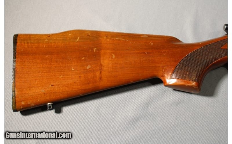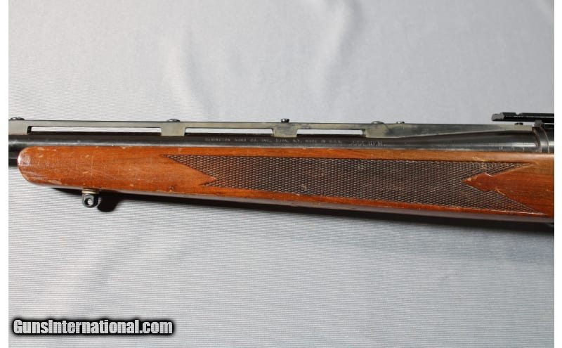 Description: Remington Model 600 bolt action rifle. Finish is good. Stock shows lots of scratches but nothing deep. .222 Remington SOLD Metal Condition: good Wood Condition: good Bore Condition: bright Barrels: 18.5" ribbed barrel Stock Dimensions: 14 Fore End: checkered wood Butt Pad: Remington plastic Weight: 6 lb - 4 oz. Sights: "blade front sight, rail for mounting optic Item Location: Council Bluffs, IA |