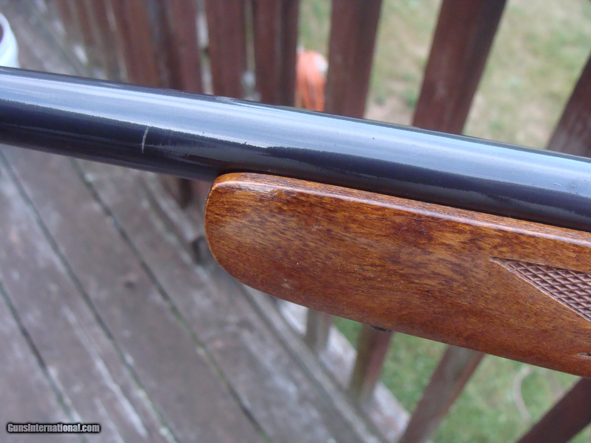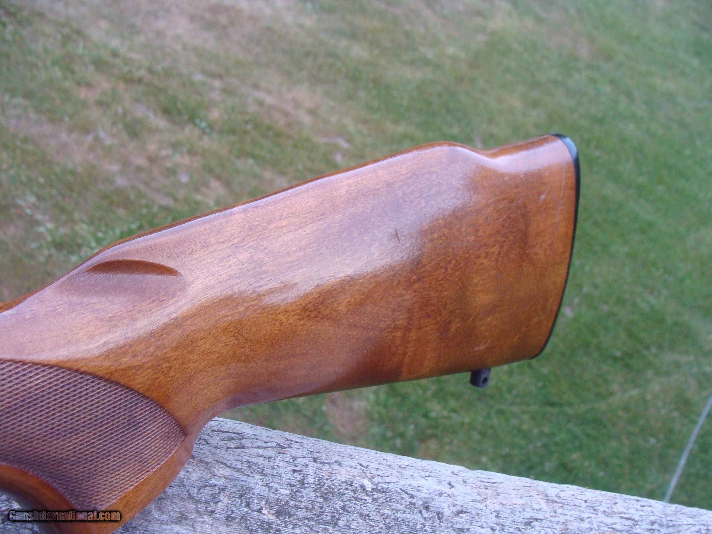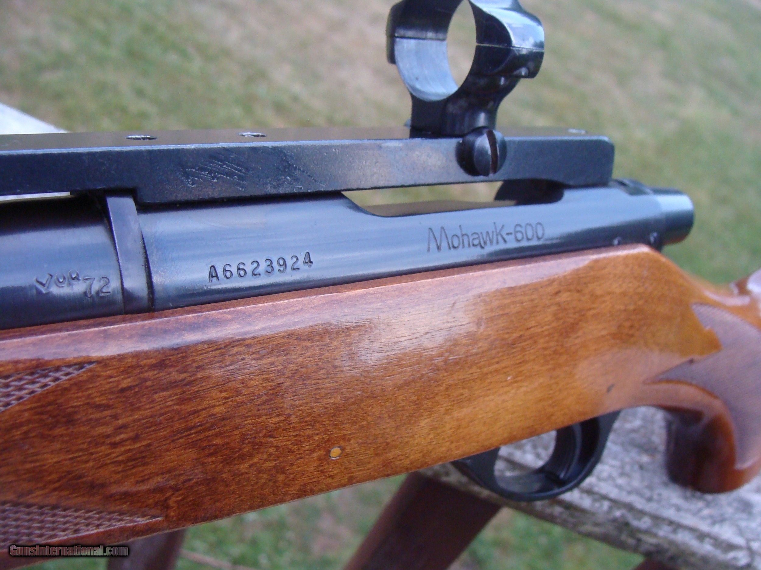 Description: The 600 Mohawks are said to have been the Kmart version of the very much sought after 600's. After production of the 600's (with vent rib) ceased in approx 1967 or 68 the Mohawks were made from 1972 to 1979. This fine example was made near the end of the run in July of 1977. It is in excellent overall condition with only light handling evidence and one small area of loss of blue top of barrel (should easily clean up with a drop of cold blue) Rear site removed to make room no doubt for the font bell os scope once present but it does come with quality Redfield one pc base and rings. Many of the 600's had the "floor plate/trigger guard warp some replaced with after market steel however this one is not warped at all. We have also listed a unique 600 in 350 Rem Mag elsewere here on Gunsinternational. The two would make a great Father Son/ Father daughter / husband /wife combo. Any buyer who buys both at the listed price of each ...we will pay for the cost to ship both. At least on picture shows both guns; the laminated stock gun is the 350 Rem listed separately on this site. One picture shows both rifles; the laminated stock gun is the 350. Shipping is $ 49.00 ea gun except as noted if both are purhased WE HAVE WELL OVER 1500 SALES ON ALL SITES WITH AN A+ RATING ON ALL (WE ALSO KEEP AN INVENTORY OF OLDER PERIOD CORRECT SCOPES; CALL WITH NEEDS) WE ARE HAPPY TO TAKE CONSIGNMENT GUNS AND COLLECTIONS OR WILL BUY YOURS OUTRIGHT. WE SOMETIMES ARE EMPLOYED FOR ESTATE PURPOSES AND VALUATIONS. CT RESIDENTS MUST CONTACT US TO UNDERSTAND OUR IN STATE TRANSFER POLICIES. WE CAN TAKE A CREDIT CARD HOWEVER THERE IS A 3% ADD ON BASED ON THE TOTAL FOR USE OF A CARD. IT IS ALWAYS THE BUYERS RESPONSIBILITY TO GET US A COPY OF YOUR RECEIVING FFL'S LIC AND WE REQUIRE A COPY OF YOUR PHOTO ID BEFORE THE GUN SHIPS YOU MUST CALL YOUR FFL.WE DO NOT CALL FOR YOU. LAYAWAY PURCHASES NOT COMPLETED OR ANY RETURNED ITEM UNLESS NOT AS DESCRIBED ARE SUBJECT TO A 10% RELISTING/RESTOCKING FEE AND MUST BE RETURNED WITH NO MARKS OR SCRATCHES, SENT BACK INSURED, PRIORITY SIGNATURE REQUIRED WE DO NOT OFFER AN INSPECTION PERIOD PER SE HOWEVER GUNS MAY BE RETURNED IF NOT EXACTLY AS DESCRIBED UNDER NO CIRCUMSTANCE MAY ANY GUN TO BE RETURNED HAVE BEEN REMOVED AT ANY TIME FROM RECEIVING FFL DEALERS PREMISIS AND RETURNS MUST 1ST BE APPROVED BY US IN ADVANCE, IN WRITING SOLD |