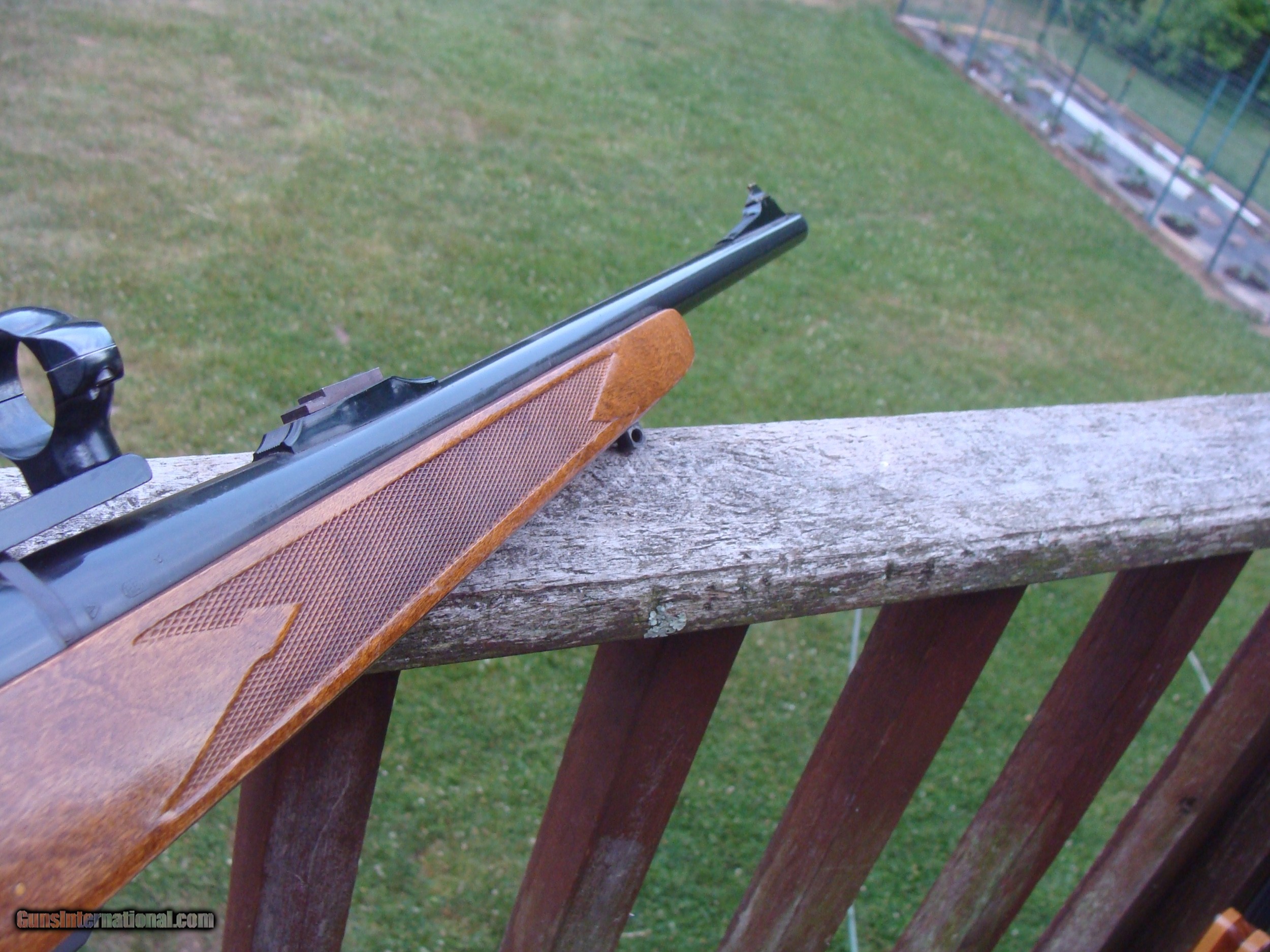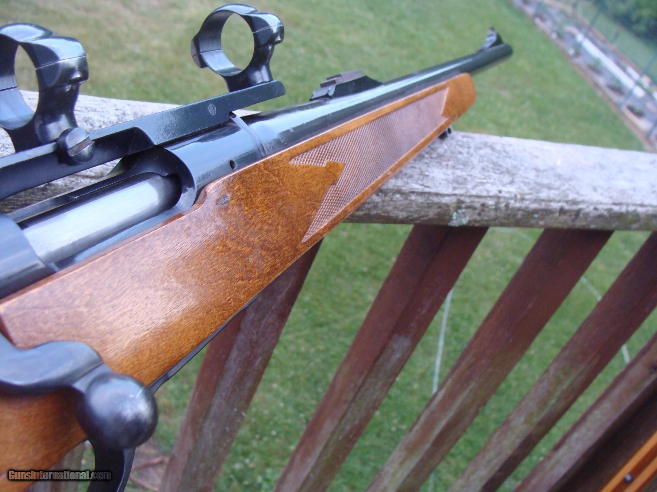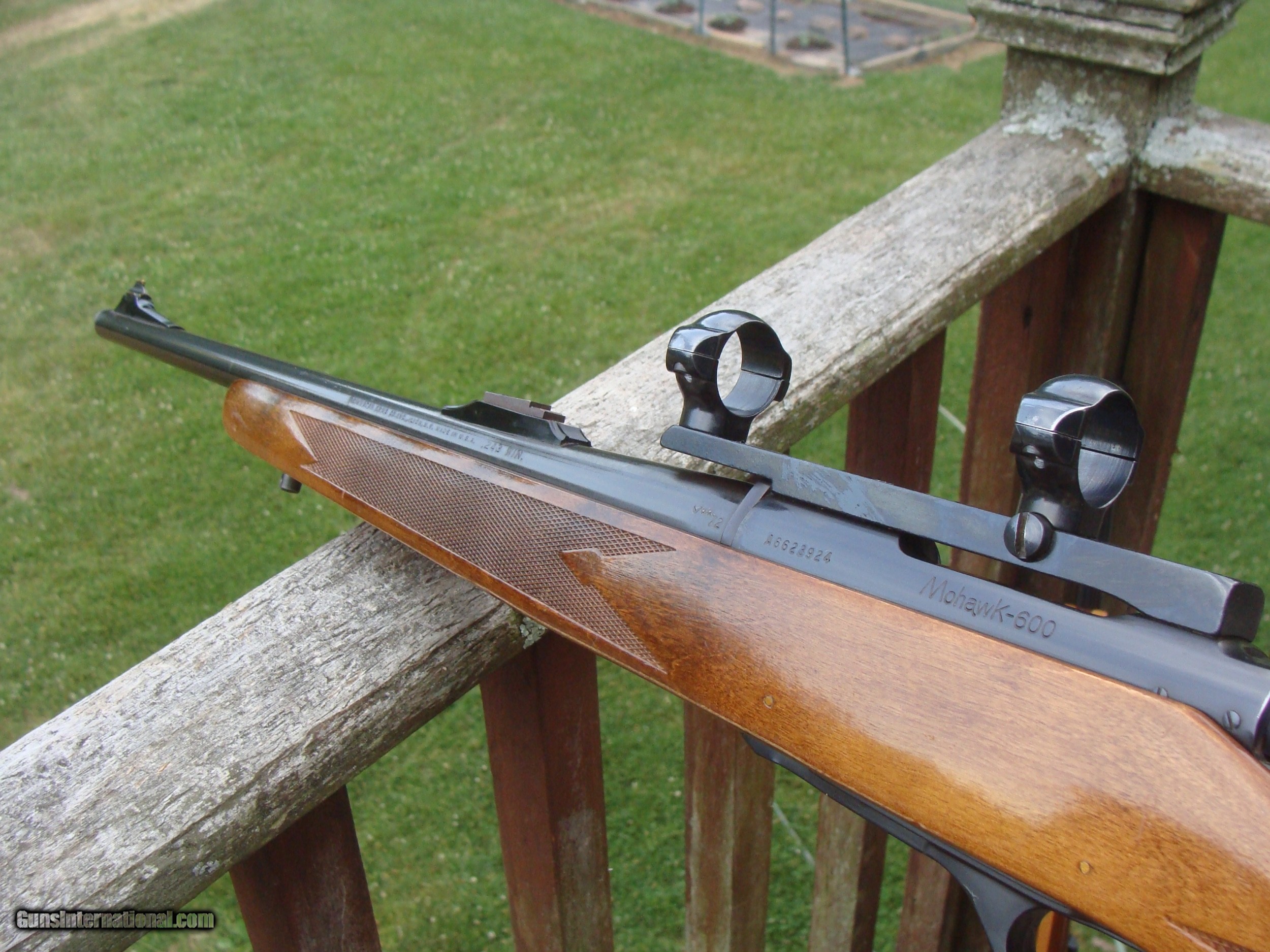 Description: The 600 Mohawks are said to have been the Kmart version of the very much sought after 600's. After production of the 600's (with vent rib) ceased in approx 1967 or 68 the Mohawks were made from 1972 to 1979. This fine example was made near the end of the run in July of 1977. It is in excellent overall condition with only light handling evidence and one small area of loss of blue top of barrel (should easily clean up with a drop of cold blue) Rear site removed to make room no doubt for the font bell os scope once present but it does come with quality Redfield one pc base and rings. Many of the 600's had the "floor plate/trigger guard warp some replaced with after market steel however this one is not warped at all. We have also listed a unique 600 in 350 Rem Mag elsewere here on Gunsinternational. The two would make a great Father Son/ Father daughter / husband /wife combo. Any buyer who buys both at the listed price of each ...we will pay for the cost to ship both. At least on picture shows both guns; the laminated stock gun is the 350 Rem listed separately on this site. One picture shows both rifles; the laminated stock gun is the 350. Shipping is $ 49.00 ea gun except as noted if both are purhased WE HAVE WELL OVER 1500 SALES ON ALL SITES WITH AN A+ RATING ON ALL (WE ALSO KEEP AN INVENTORY OF OLDER PERIOD CORRECT SCOPES; CALL WITH NEEDS) WE ARE HAPPY TO TAKE CONSIGNMENT GUNS AND COLLECTIONS OR WILL BUY YOURS OUTRIGHT. WE SOMETIMES ARE EMPLOYED FOR ESTATE PURPOSES AND VALUATIONS. CT RESIDENTS MUST CONTACT US TO UNDERSTAND OUR IN STATE TRANSFER POLICIES. WE CAN TAKE A CREDIT CARD HOWEVER THERE IS A 3% ADD ON BASED ON THE TOTAL FOR USE OF A CARD. IT IS ALWAYS THE BUYERS RESPONSIBILITY TO GET US A COPY OF YOUR RECEIVING FFL'S LIC AND WE REQUIRE A COPY OF YOUR PHOTO ID BEFORE THE GUN SHIPS YOU MUST CALL YOUR FFL.WE DO NOT CALL FOR YOU. LAYAWAY PURCHASES NOT COMPLETED OR ANY RETURNED ITEM UNLESS NOT AS DESCRIBED ARE SUBJECT TO A 10% RELISTING/RESTOCKING FEE AND MUST BE RETURNED WITH NO MARKS OR SCRATCHES, SENT BACK INSURED, PRIORITY SIGNATURE REQUIRED WE DO NOT OFFER AN INSPECTION PERIOD PER SE HOWEVER GUNS MAY BE RETURNED IF NOT EXACTLY AS DESCRIBED UNDER NO CIRCUMSTANCE MAY ANY GUN TO BE RETURNED HAVE BEEN REMOVED AT ANY TIME FROM RECEIVING FFL DEALERS PREMISIS AND RETURNS MUST 1ST BE APPROVED BY US IN ADVANCE, IN WRITING SOLD |