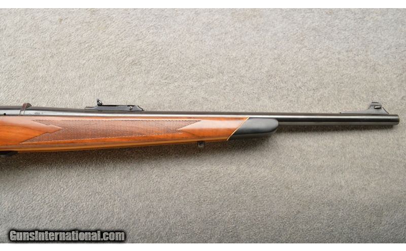 Description: This is a very close to new looking Remington 660 carbine in .35 Rem mag. The blue is very nice with just a little muzzle wear. The walnut and birch/maple stock is in great condition with just a few very minor marks. This is a hard rifle to find and it is very nice. .350 Remington Magnum SOLD Chambers: Bolt action repeater. Metal Condition: "Just a touch of muzzle wear, otherwise close to new. Wood Condition: Very close to new with just a few very small marks. Bore Condition: Bright and shiny. Barrels: 20" round blue with sights. Triggers: Single blue. Stock Dimensions: 13 1/2" LOP. Fore End: "Laminate walnut and birch/maple with checkering, a sling stud and a black tip. Butt Pad: "Matching laminated wood with a checkered pistol grip, grip cap, sling stud and a black rubber Remington butt pad. Weight: 6 Lbs. 8 Oz. Sights: Adjustable rear with an elevator and a bead on blade front. Item Location: Owatonna, MN |