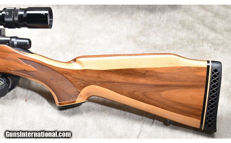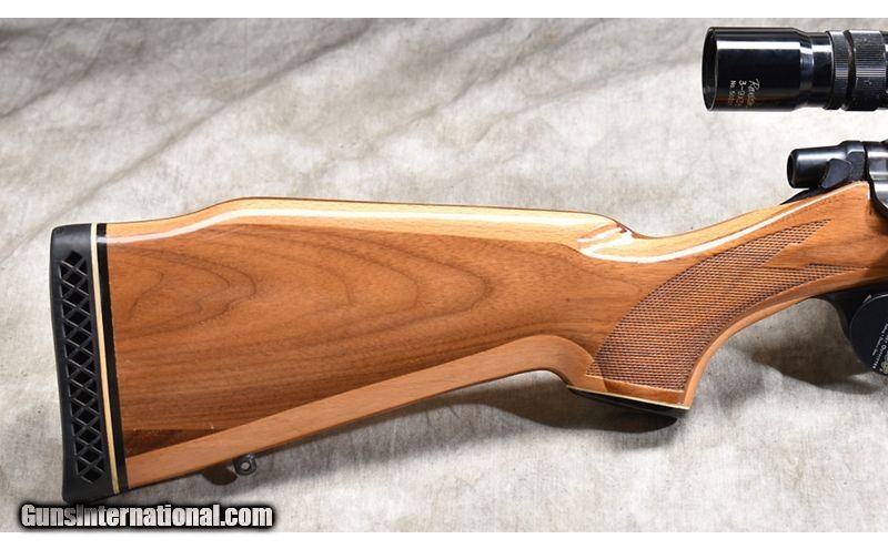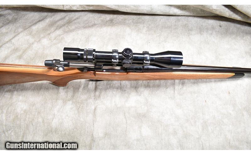 Description: The features on this little bolt action carbine include a very nice laminated hardwood stock with tip and grip caps, 38-1/2 inch overall length, and set up for hunting with a 3-9 power zoom scope. .350 Remington Magnum SOLD Chambers: 4 Metal Condition: Very good. Wood Condition: "Very good. A large number of shallow scratches, mainly left side of butt stock. Bore Condition: "Shiny and bright, good rifling. Barrels: 20-inch Triggers: Factory trigger Stock Dimensions: 13-5/8 inch LOP Fore End: Laminated stock wit contrasting grip and tip caps. Butt Pad: Ventilated rubber pad. Weight: 7 lb - 12 oz Sights: "Bead front sight, drilled for rear ""iron"" sight, set up for optical sight and outfitted with a 3-9x39mm scope. Item Location: Rogers |