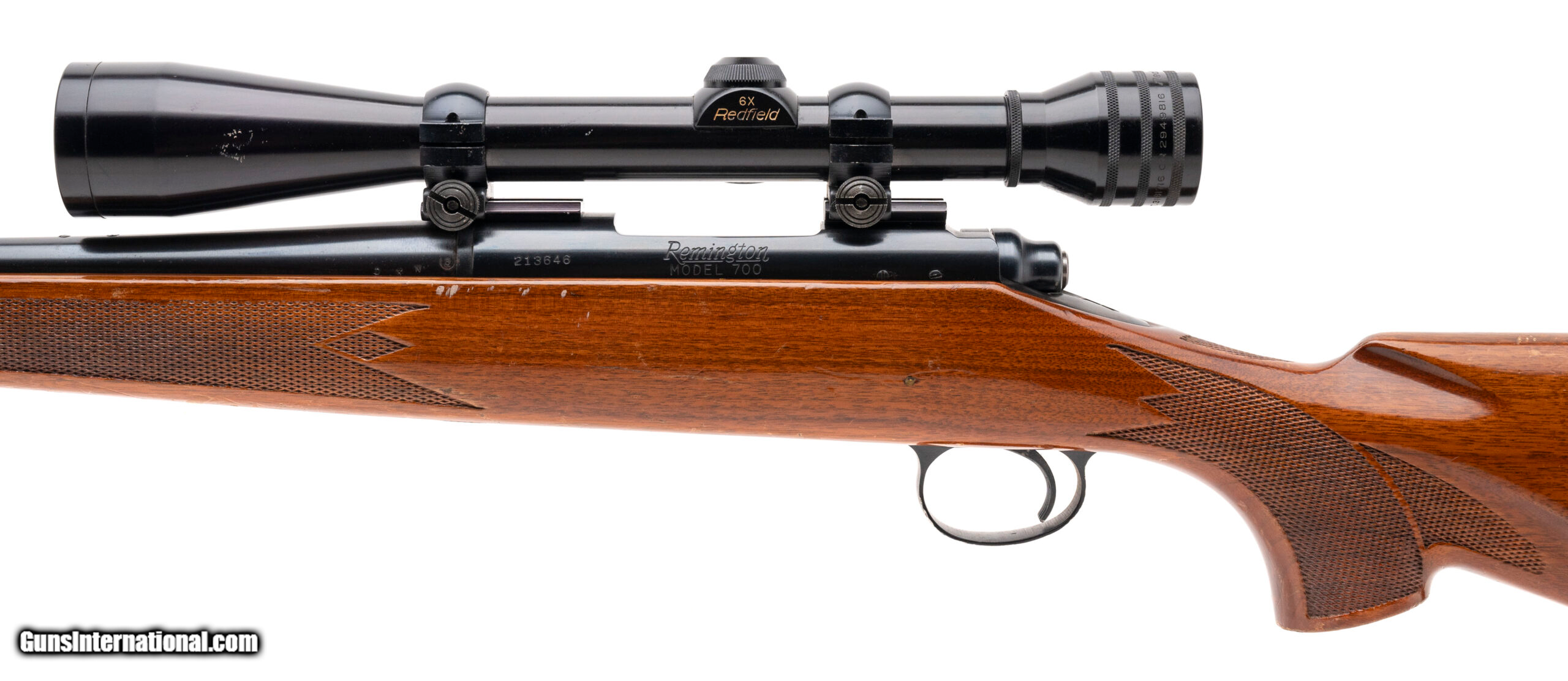 Description: "SN: 213646. Made in 1966, 22-250 Rem with a 24"" barrel. Bore is bright with strong rifling. Bolt action hunting rifle with a 6x Redfield scope. Blue finish and wood stock shows wear but is in very good condition. Overall condition is very good. (Consignment) SOLD |