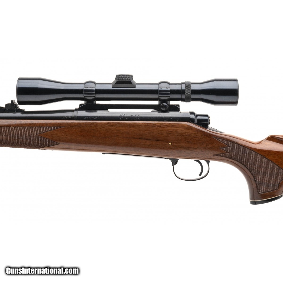Description: "SN: A6374247. Made in 1988. .243 Win with a 22"" barrel. Bore is in excellent condition. Remington BDL bolt action hunting rifle with a jeweled bolt. Finish is in excellent condition. Deluxe checkered wood stock is in near excellent condition with minimal wear. Overall condition is excellent. Comes with Redfield Tracker 3X-9X scope and sling. SOLD |