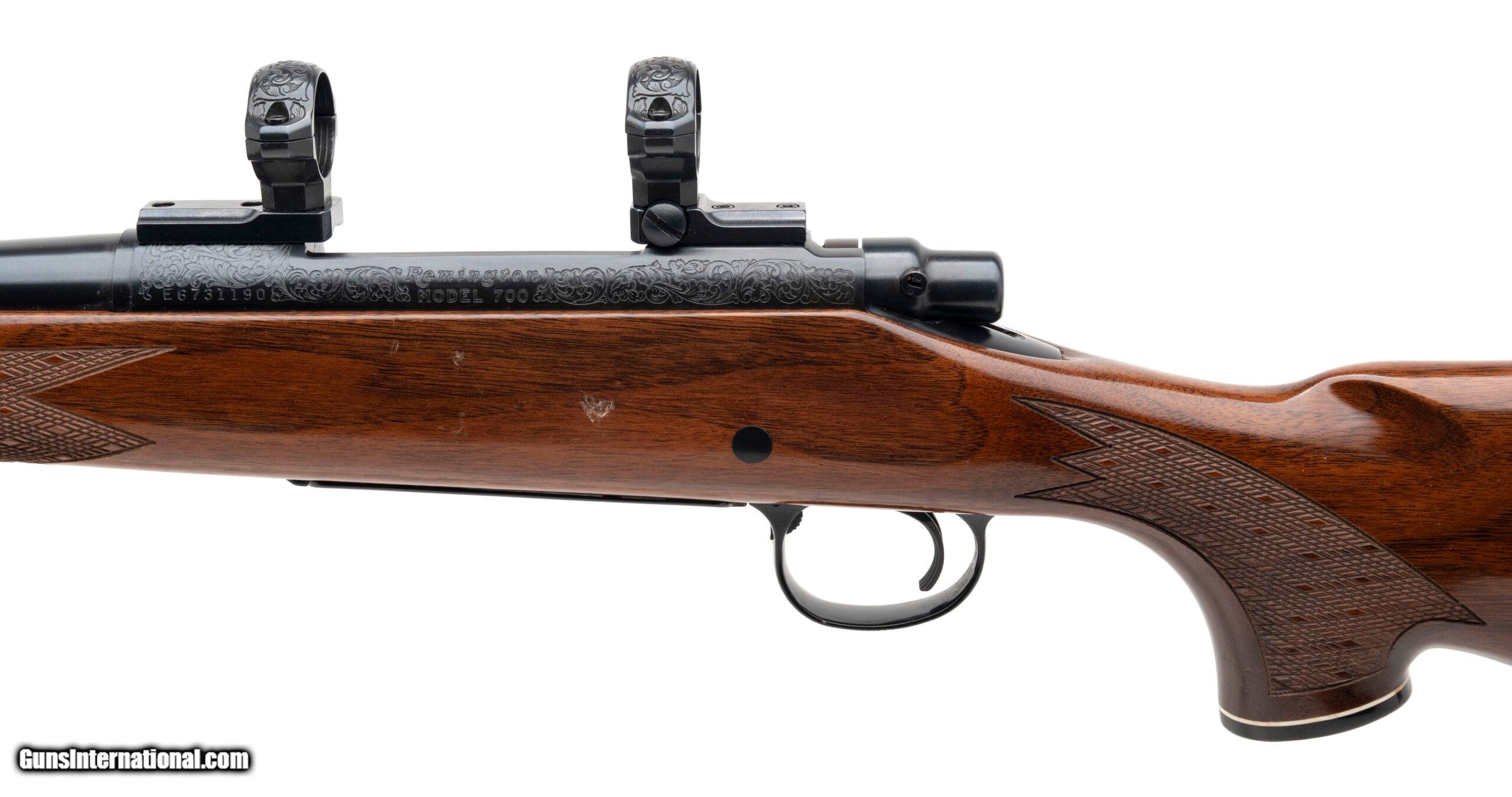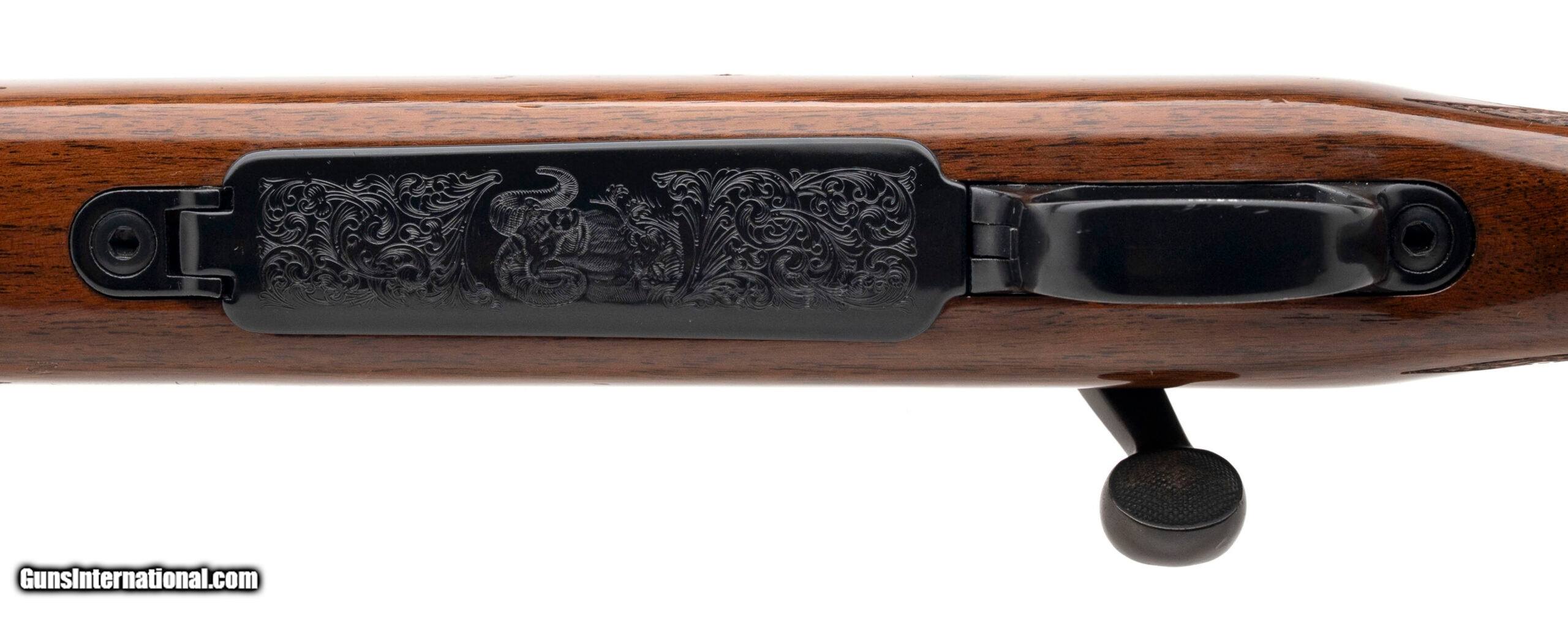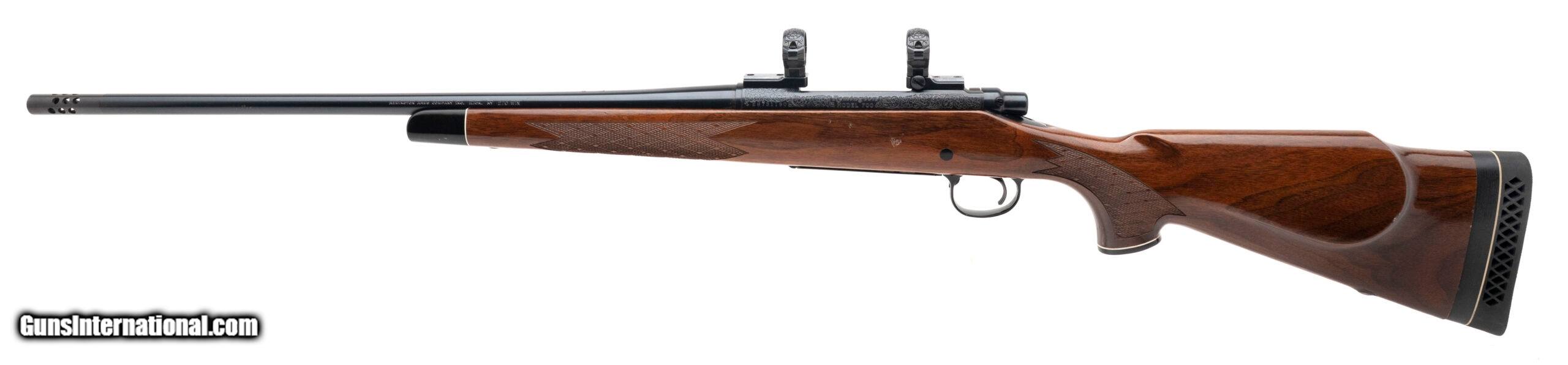 Description: "SN: E6731190. 1990's vintage .270 Win with a 20"" barrel. Deluxe bolt action rifle with scroll engraving on the receiver and floor plate. Has engraved scope rings also. The barrel has been shortened and a custom muzzle brake installed. The rifle shows marks and hunting wear on the metal and stock. Overall good condition, a sharp looking rig. SOLD |