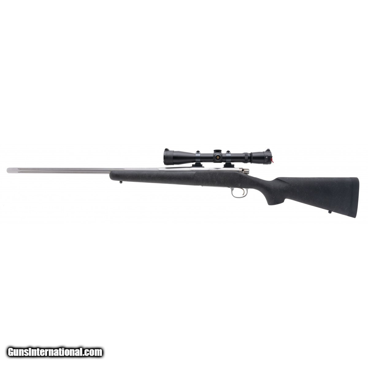 Description: " SN: S6489044. Modern production. .300 Remington Short Action Ultra Magnum with a 26"" fluted heavy barrel. Bore is in excellent condition. Remington bolt action stainless hunting rifle. Metal is in excellent condition. Composite stock is in excellent condition. Overall condition is excellent. Comes with Leupold VX-III 4.5-14X40mm Long Range scope. (Consignment) SOLD |