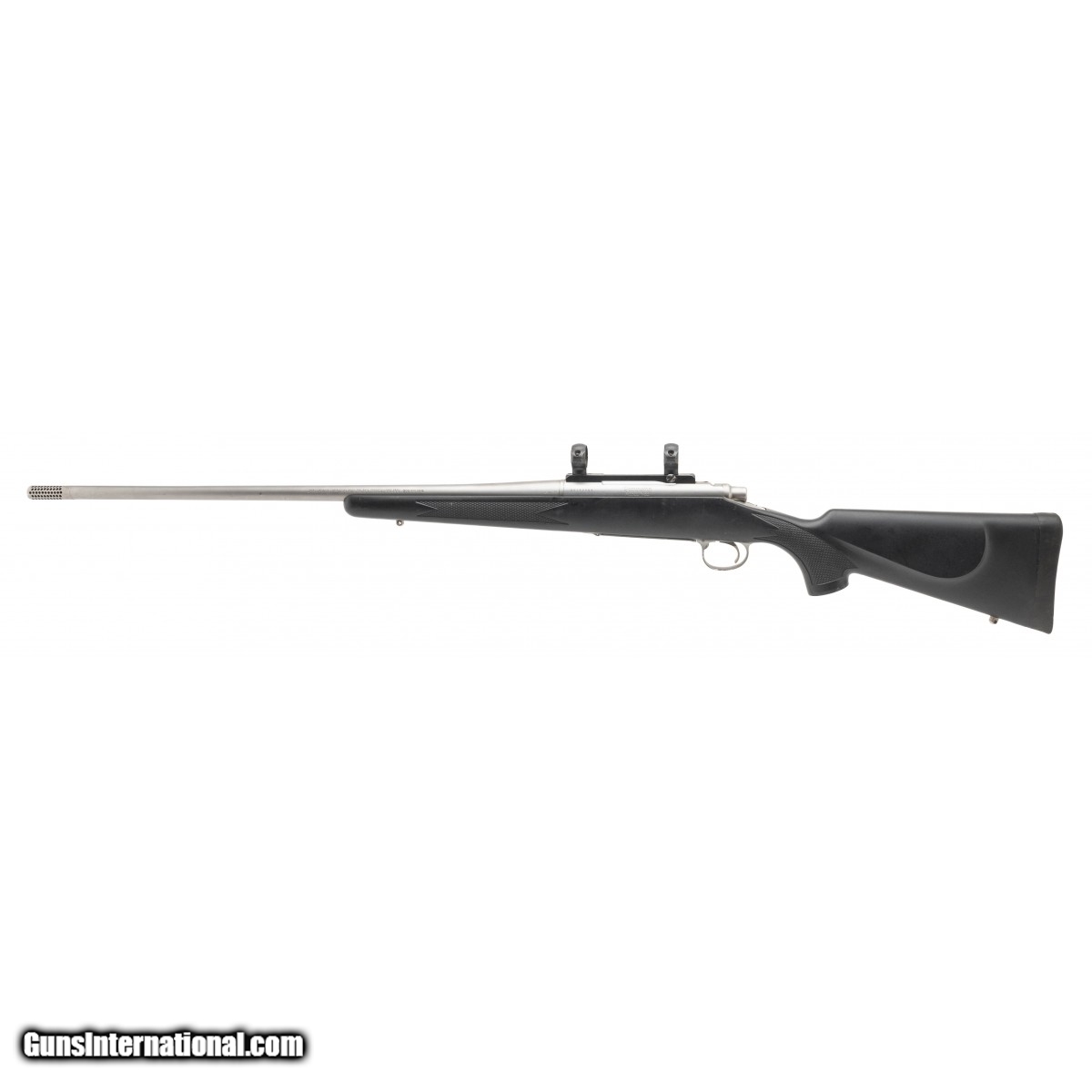 SN: S6262269. Bolt-action rifle made by Remington in 1994. 24"" stainless barrel chambered for .300 Win Mag, with 2"" muzzle brake. 13.75"" length of pull including three-quarter inch original buttpad. Good condition overall with scattered handling marks and some finish wear on top of the barrel. Jewled bolt finish has a worn side from use. Bore is excellent. Action functions correctly. Comes with mounted Redfield 3-9x scope.