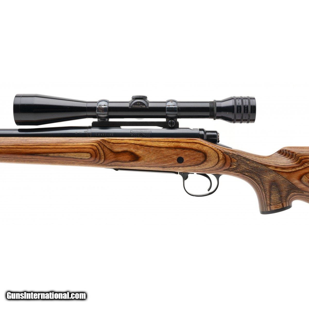 Description: "SN: E6422482. Made in 1997. 7mm-08 Remington with a 26"" heavy barrel. Bore is in excellent condition. Remington bolt action varmint rifle with a jeweled bolt. Finish is in excellent condition. Laminate wood stock is in excellent condition with minimal wear. Overall condition is excellent. Comes with Redfield Fixed 6X scope. SOLD |
