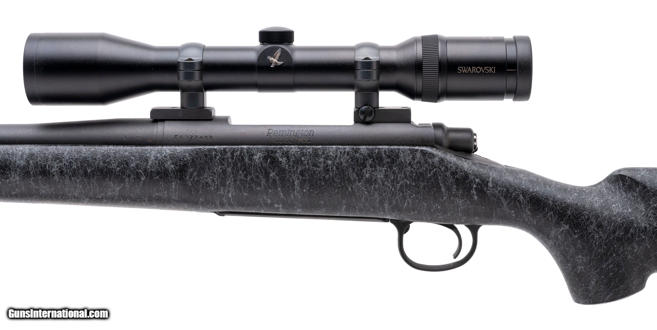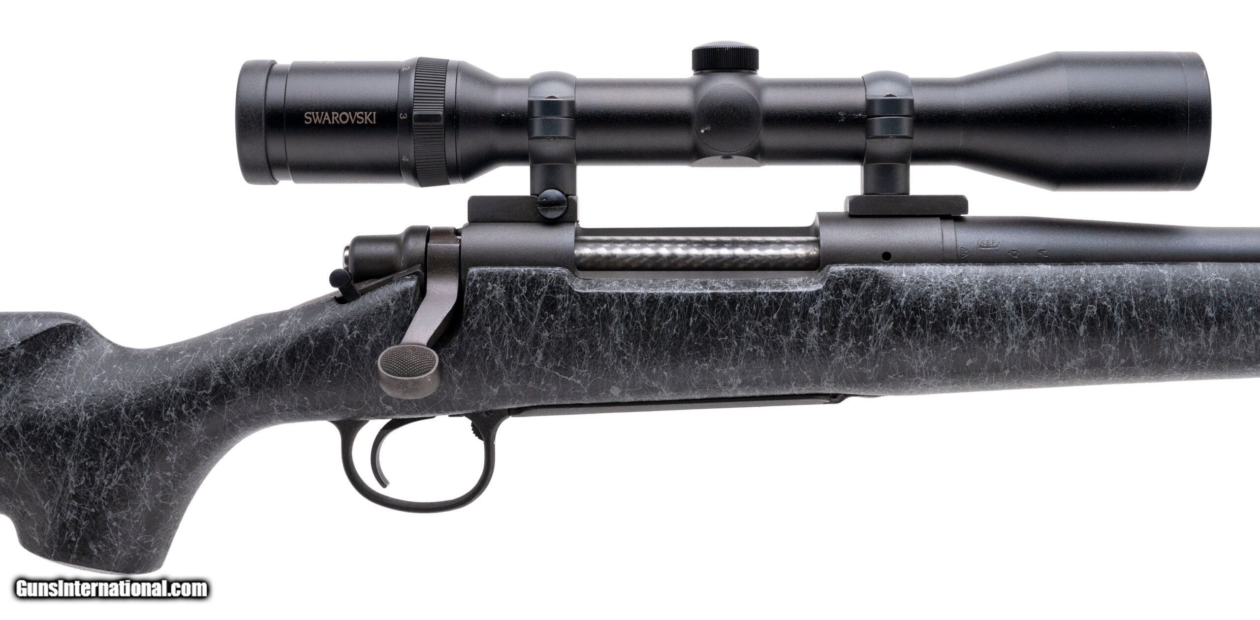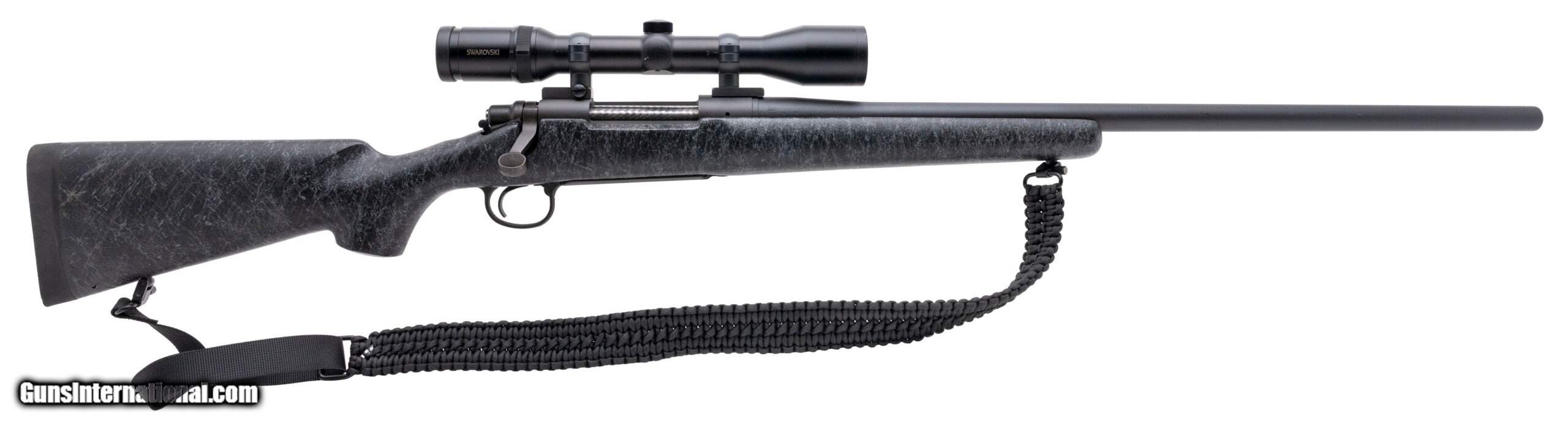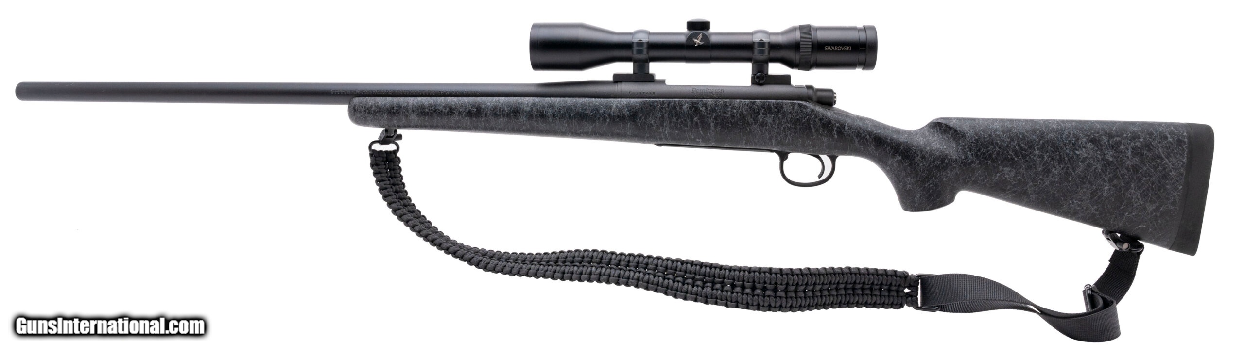 Description: "SN: E6377498. Modern production. 25-06 Remington with an 26"" heavy barrel. Bore is in excellent condition. Remington bolt action hunting rifle with an jeweled bolt. Finish is in excellent condition. Composite stock is in excellent condition. LOP is 13.50"". Overall condition is excellent. Rifle comes with sling and Swarovski 1.5-6X42 scope. SOLD |