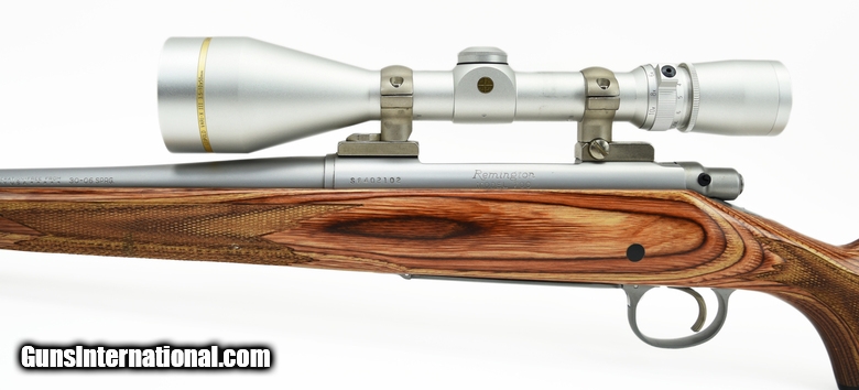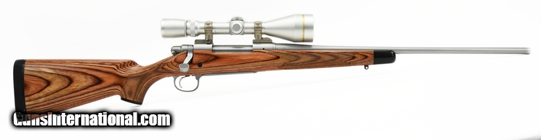 Description: Remington 700 .30-06 SPRG caliber rifle. Stainless lightweight mountain rifle with pencil barrel and laminated stock. Excellent condition with Leupold 3.5X10 scope. SOLD |