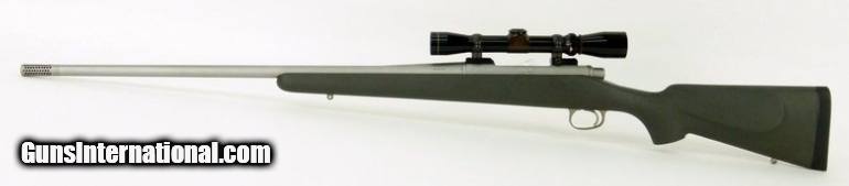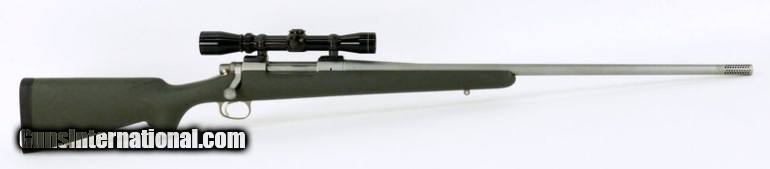 Description: Remington Arms 700 .375 H&H Magnum caliber rifle. Custom shop KS Model with stainless steel barrel and action, Kevlar stock, and custom muzzle brake. Excellent condition with Leupold 2x7 scope. A top quality custom grade rifle in very good condition. SOLD |