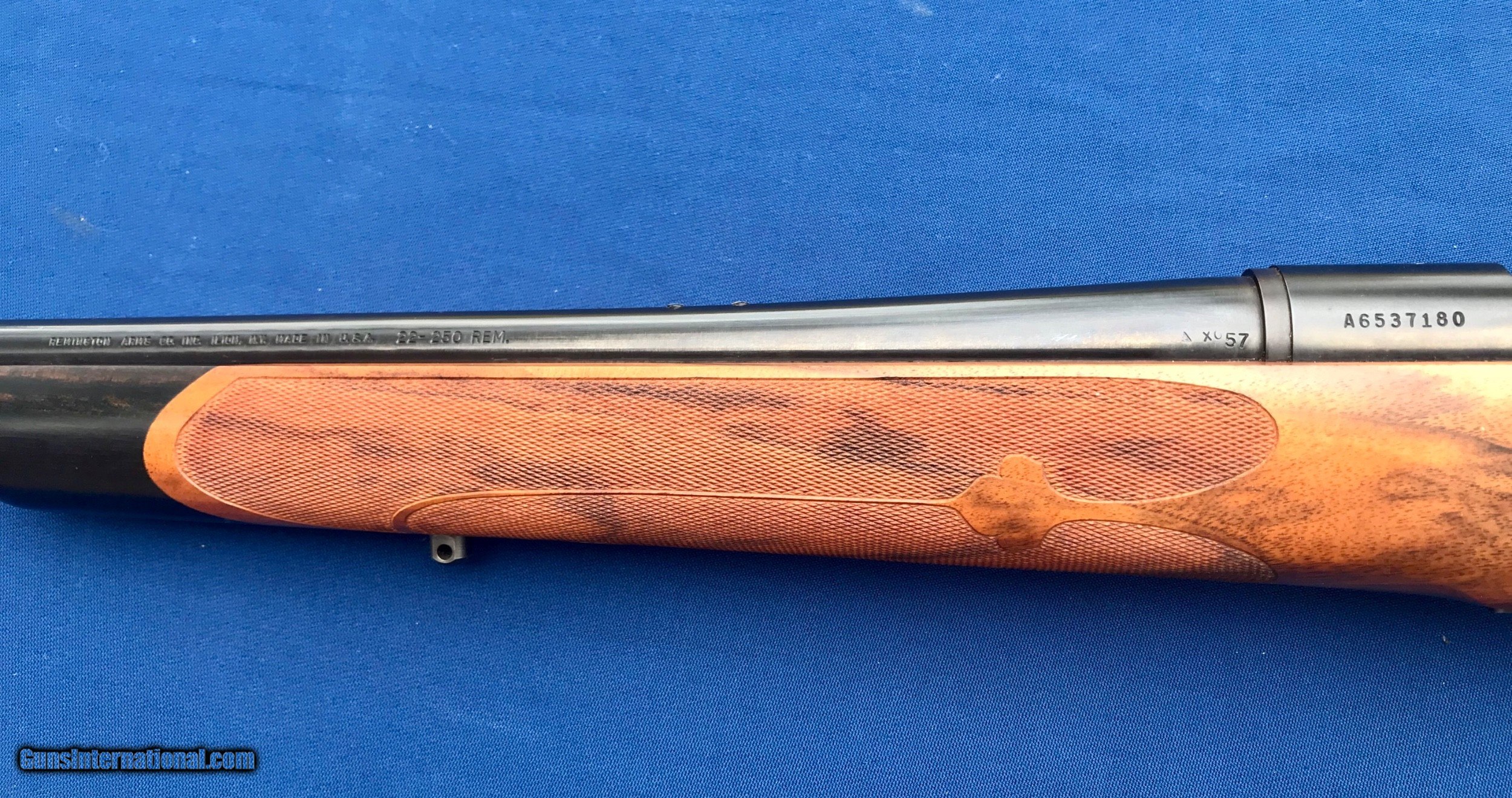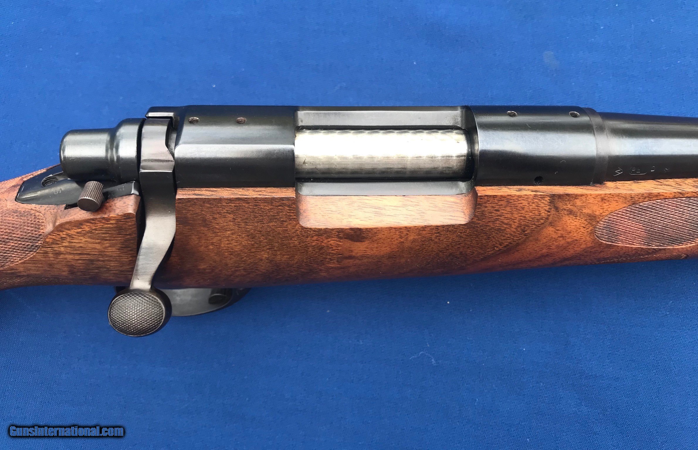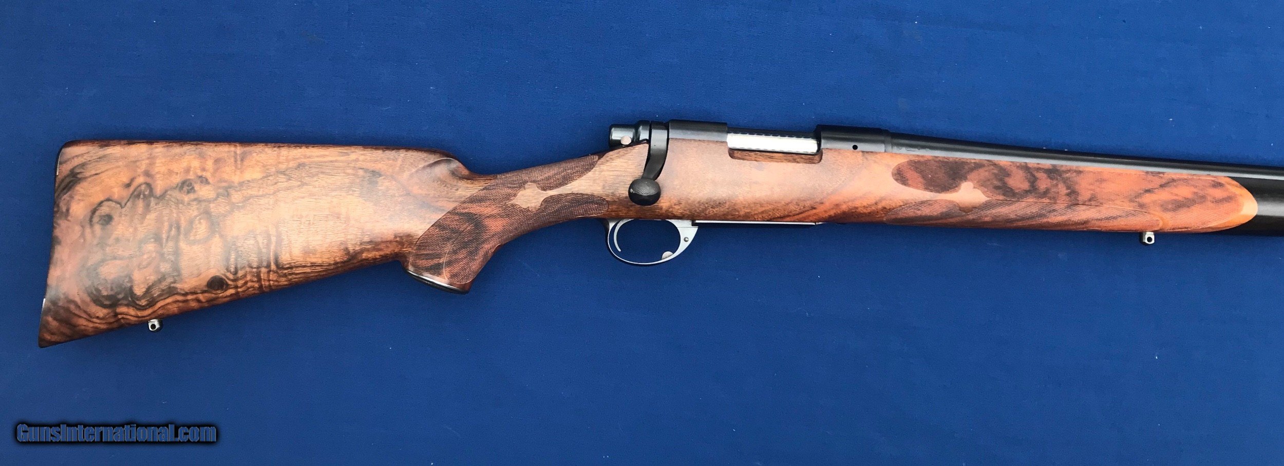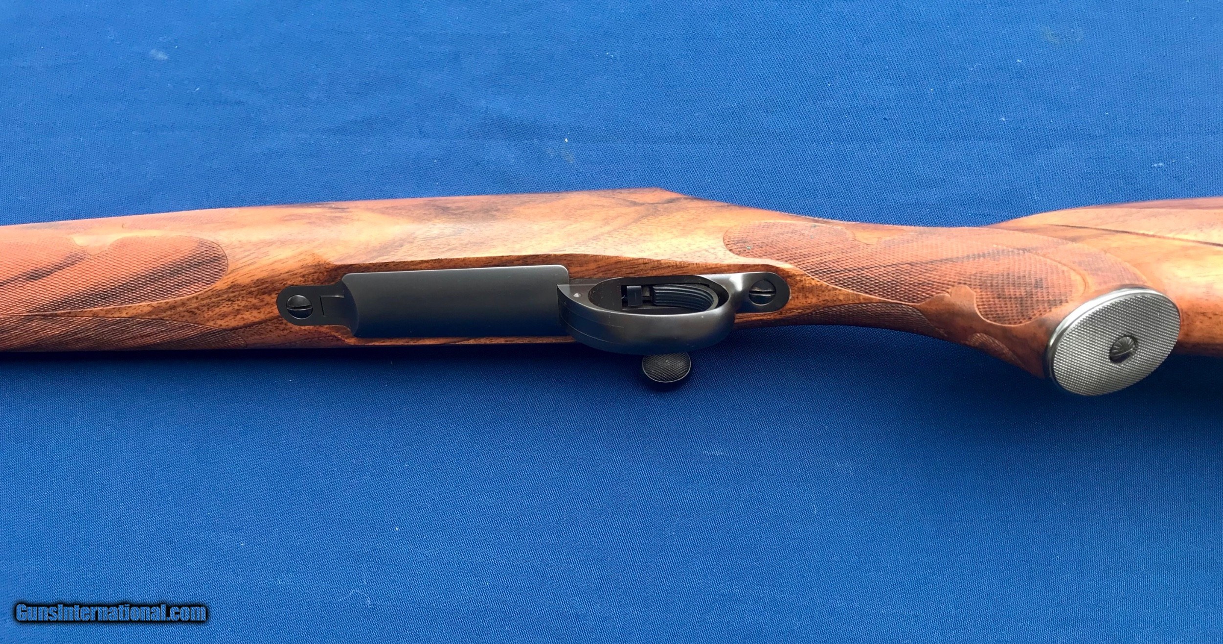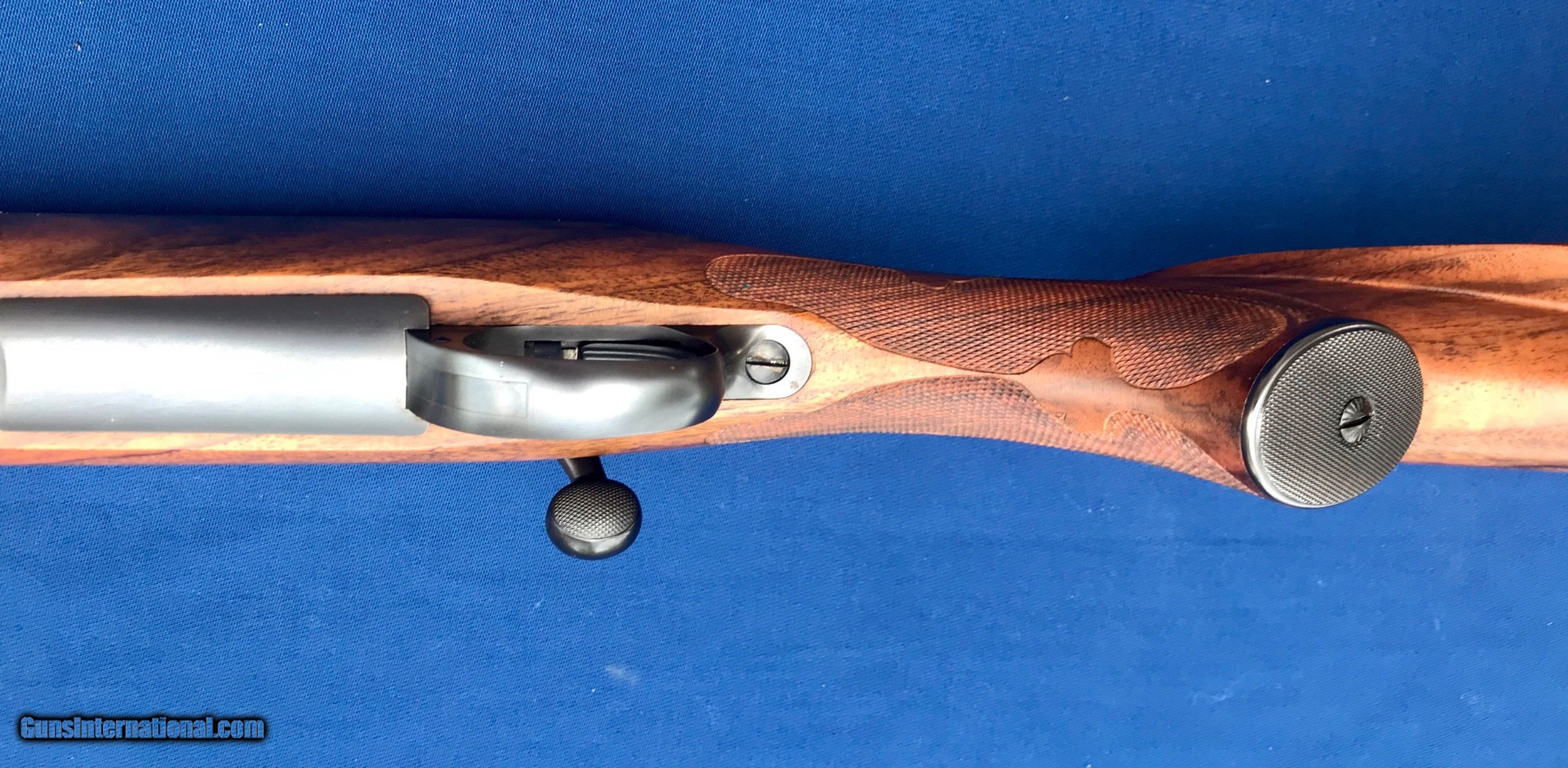 Description: Exceptional Duane Wiebe custom stocked rifle utilizing a Remington 700 Classic .22-250 barreled action. Features include a highly figured walnut stock with a 14.5" LOP, checkered butt with metal heel and toe plates, shadow line cheekpiece, checkered steel grip cap, Blackburn bottom metal, intricate checkering design and execution with fleurs, and ebony forend tip. Mr. Wiebe has a reputation a one of the finest custom stockmakers in existence, and this is a superb example of his craft. It was stocked in 1982 and is stamped "D Wiebe 1982" in the barrel channel. It remains in 99% condition and appears to be unfired. Please contact me via email, and I will respond promptly. References provided upon request. SOLD |