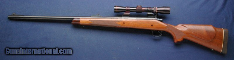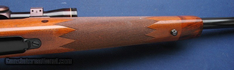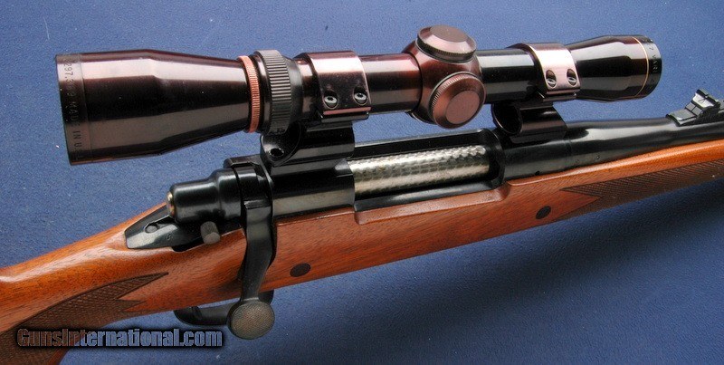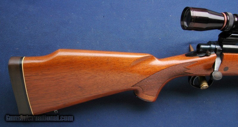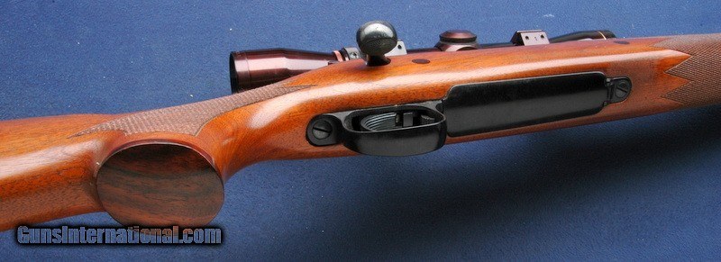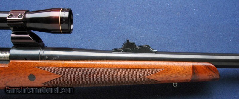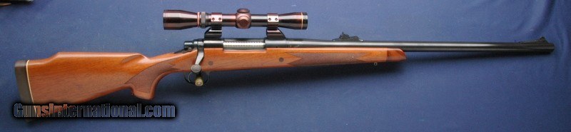 Description: I'm thinking this one has not been fired much, perhaps never even hunted. There are a couple of minor marks on the stock, but these strike me as imperfect storage more than anything else. Some rubs on the floorplate, but no blue wear at all otherwise. The bore is absolutely stone mint. Iron sights, see thru scope rings, and the optic round out the package. It is a Leupold gold ring Vari-X II in 2x7 with a duplex reticle. Perfectly clear, turning purple as they do over time. $80 shipping to the lower 48, 3% surcharge for using a CC. If you pay with a personal check, you can expect us to hold the item for up to 10 days to ensure that the check clears. SOLD Rifle Caliber: .458 Winchester Magnum |