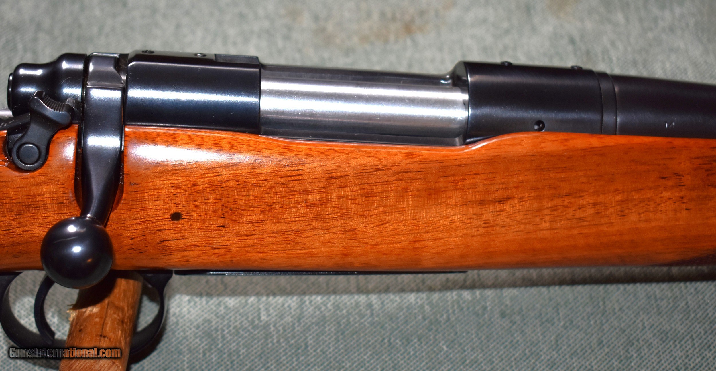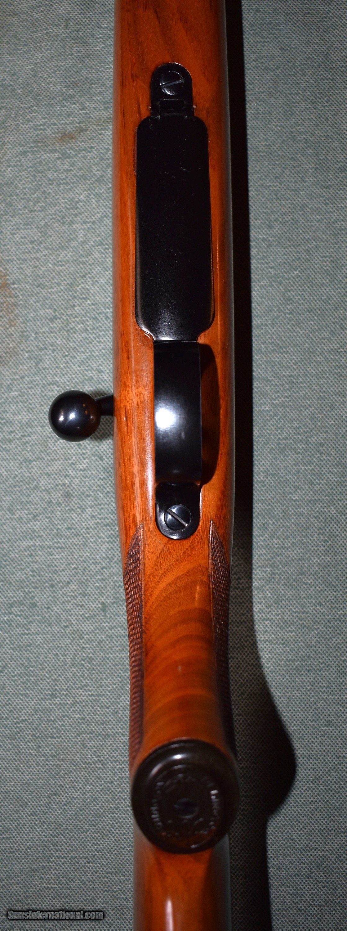 Description: Remington model 725 in the hard to find 222 Remington caliber. Built in 1961, this rifle is in mint all original condition. It retains 100% of the original blue and wood finish. The stock is an unusual light honey colored blonde wood but is completely original. The rifle is factory drilled and tapped but has never had a scope on it. The bore is mint with sharp rifling and shows no wear. The stock retains the original aluminum buttplate. All screws and roll stamps are sharp and crisp.The 222 Rem caliber was only offered in the 725 for the last 2 years of production and is very hard to find in a rifle of this condition. The 725 was brought out to compete with the Winchester model 70 featherweight rifles. It was built from 1958 through 1961 and was dropped due to high production cost and replaced by the 700 line. It features hand cut checkering,a drop floorplate,factory open sights,and a lever safety. This is a collector condition rifle in a scarce caliber.C&R eligible. SOLD Rifle Caliber: .222 Remington Manufacturer: Remington Model: 725 Serial Number: 711282 barrel code H Barrel Length: 22 Condition: mint Metal Condition: mint Wood Condition: mint Bore Condition: mint Action: Bolt Butt Pad: Factory aluminum butt Manufacture Date: 1961 |