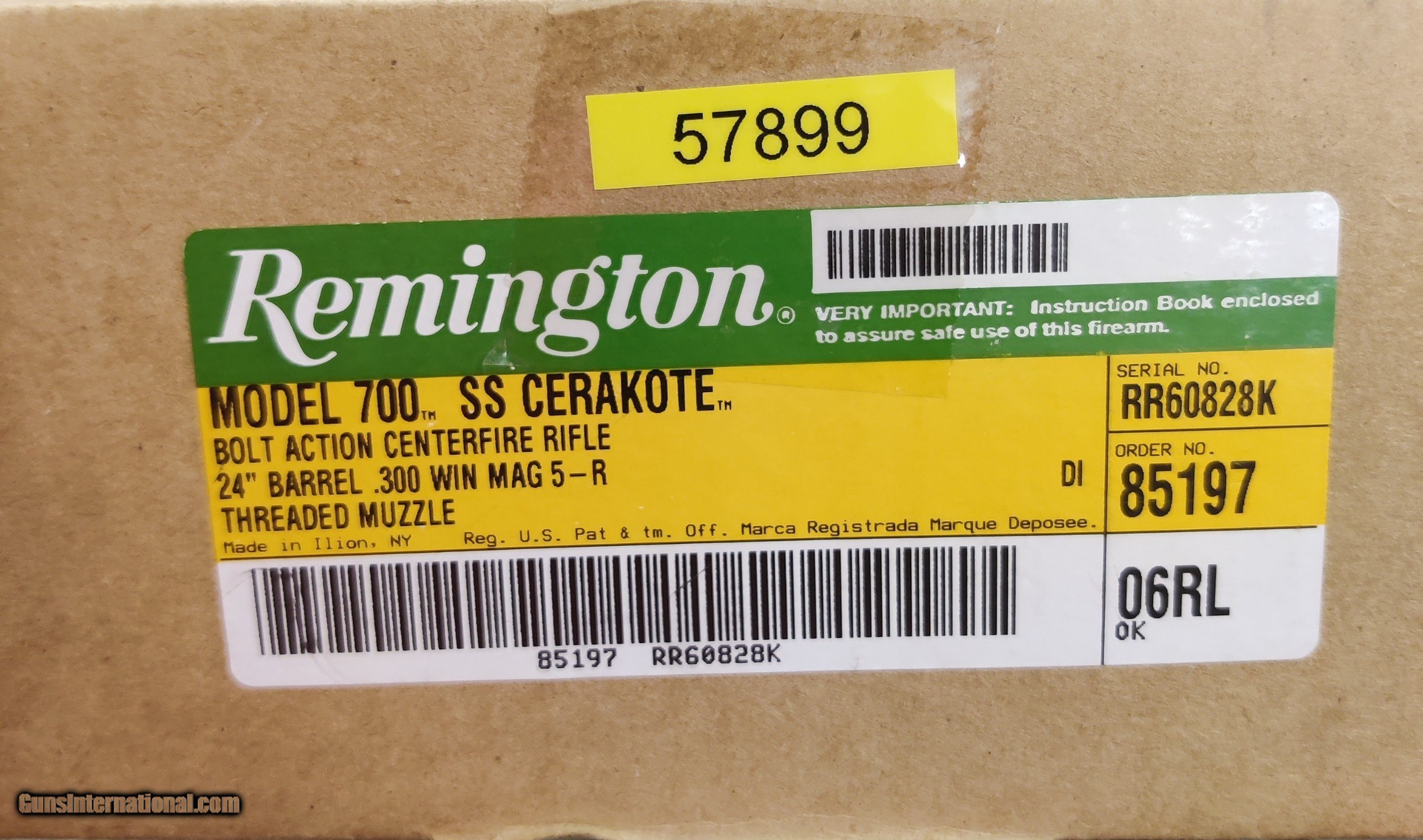 Description: Very rare. New in the box. Remington 700 SS 5R Cerakote 300 win mag. Threaded fluted barrel and adjustable trigger. SOLD Rifle Caliber: .300 Winchester Magnum Manufacturer: Remington |