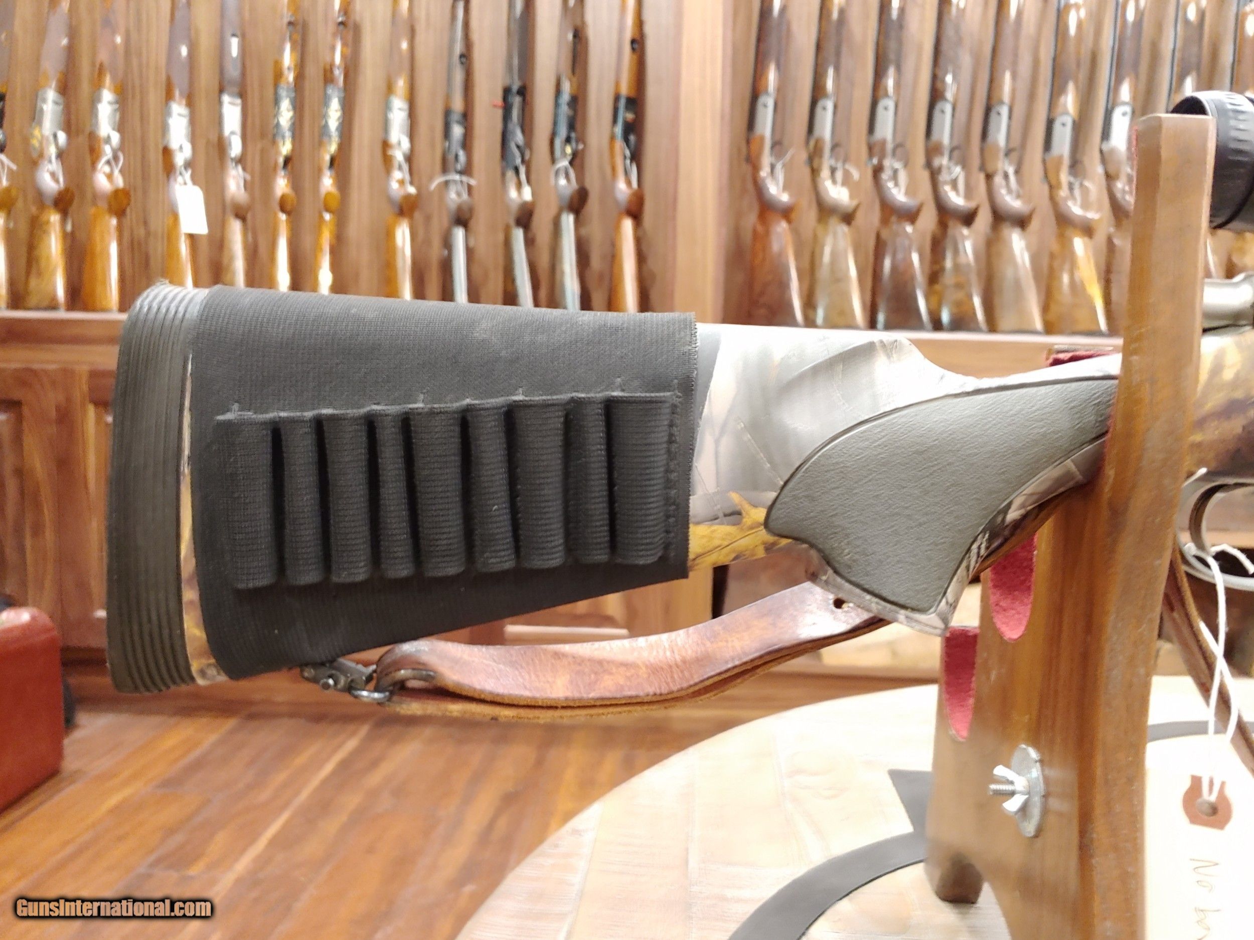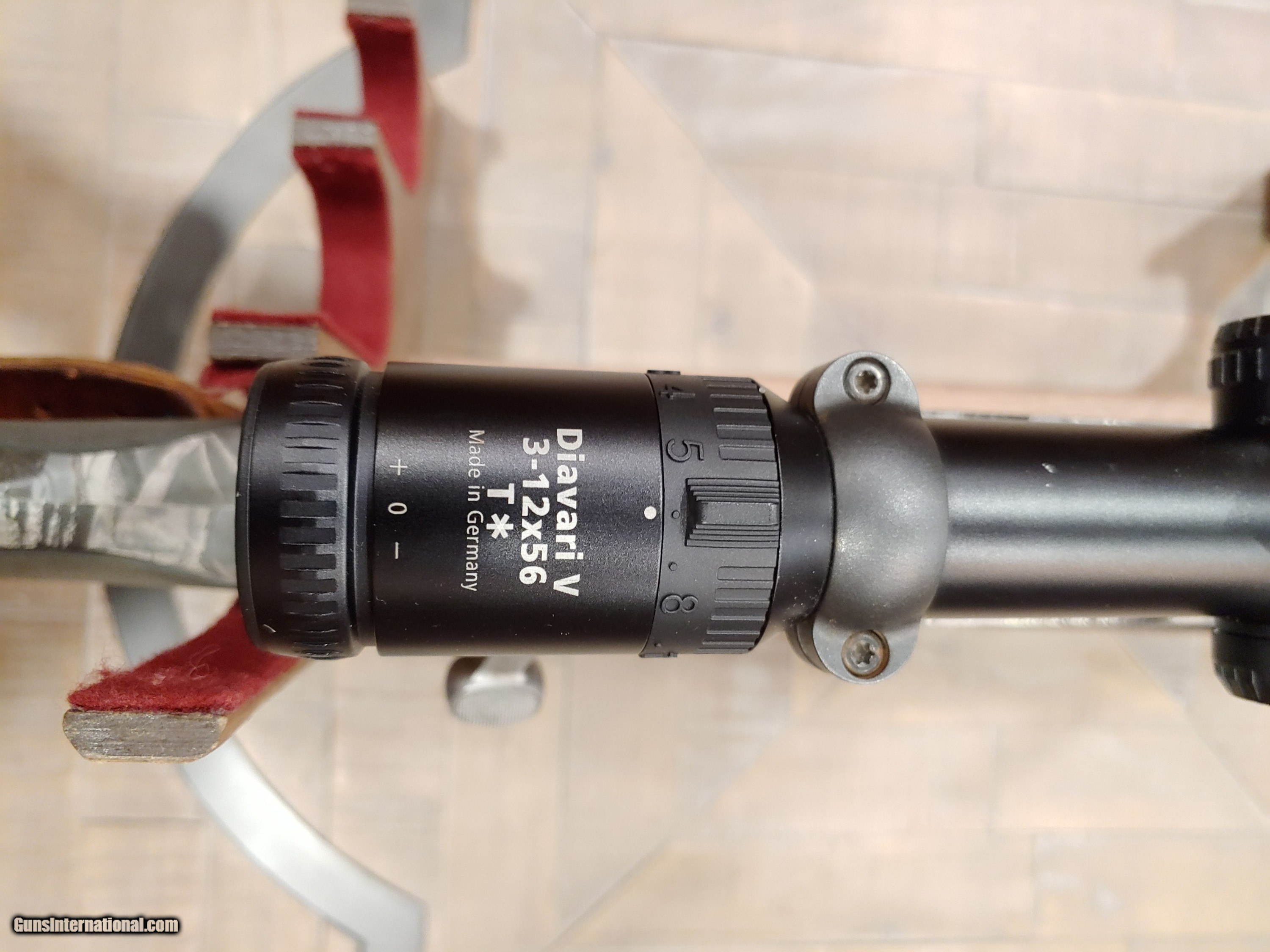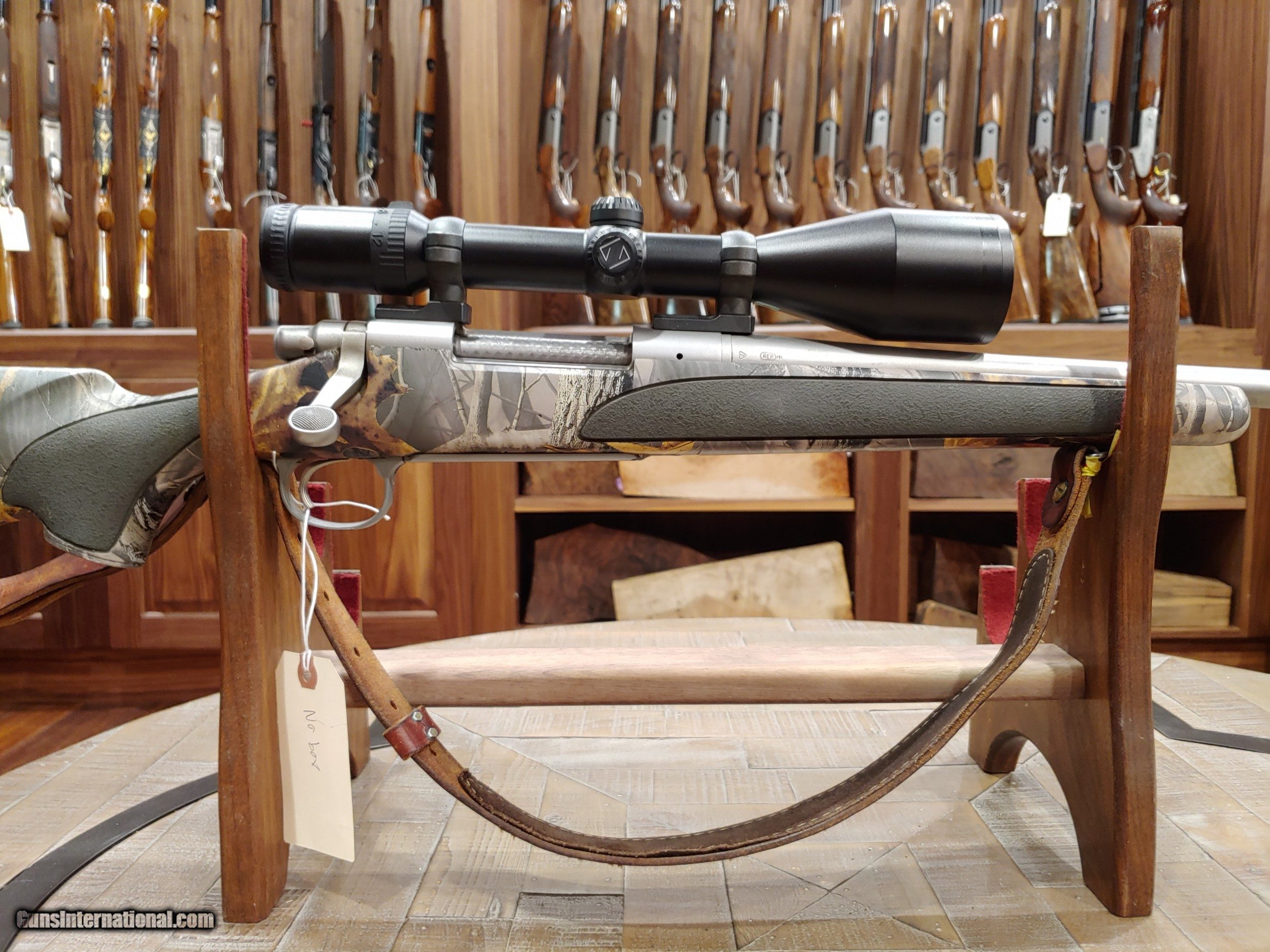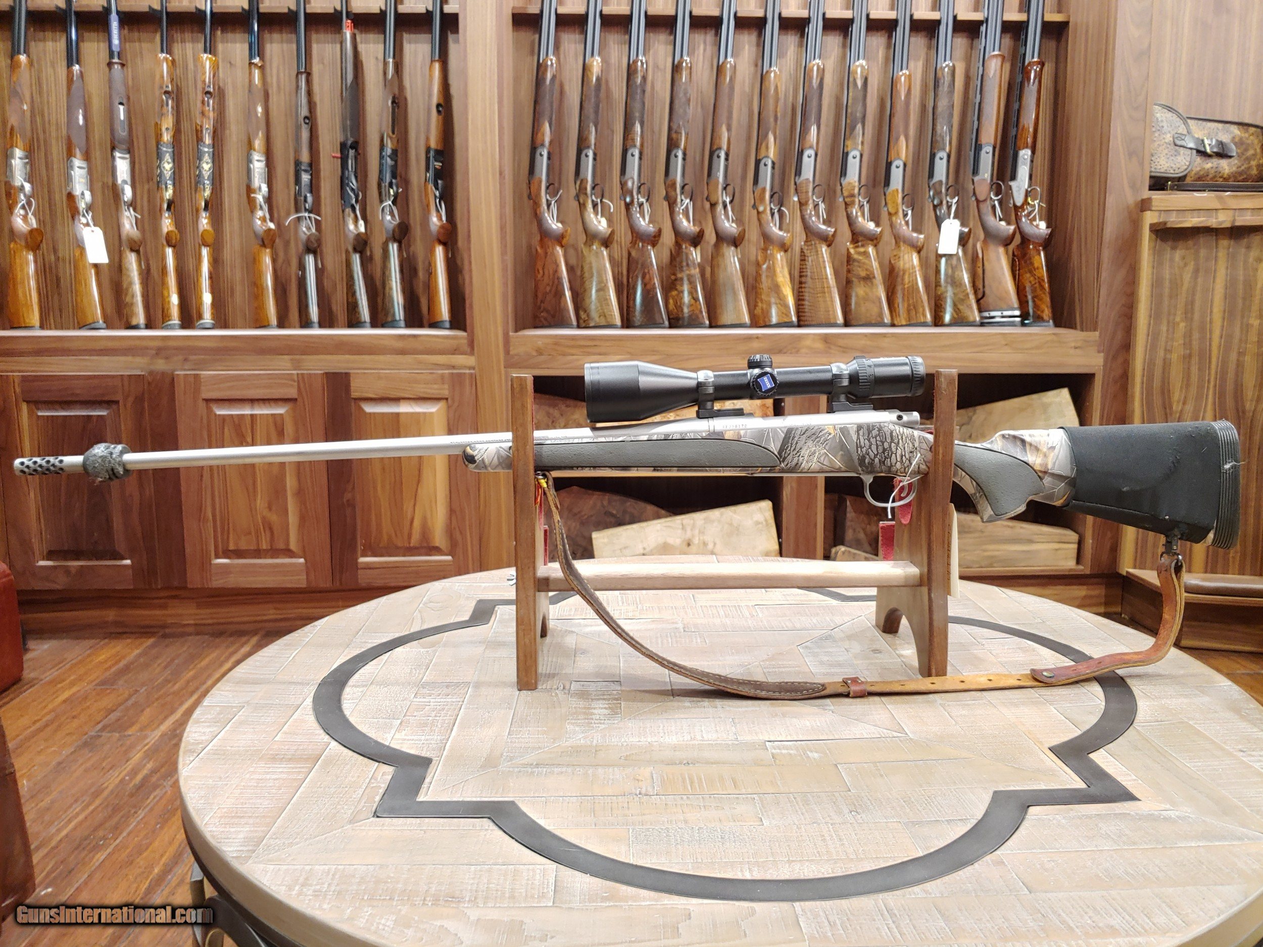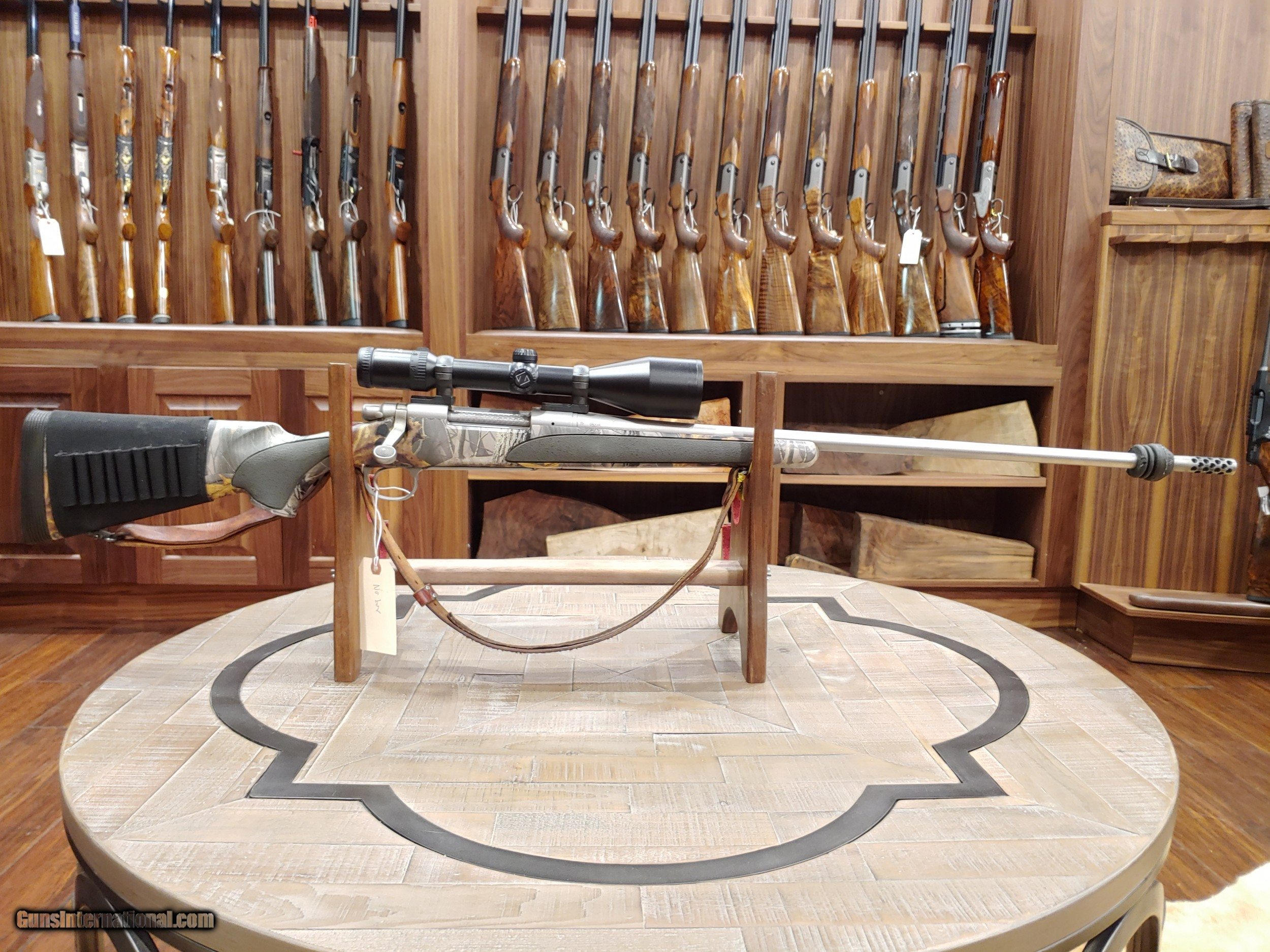Description: This Remington M700 is a bolt-action rifle chambered in.300 Ultra Remington Magnum rounds with a 24.5" silver barrel. It has an overall length of 48.5", an LOP of 13.5", and a 2.75" muzzle. It features a woodland camo finish on the stock. Gun comes with a tactical stock sleeve, leather sling, and a Zeiss Diavari V 3-12x56 Scope. This gun is in great condition.