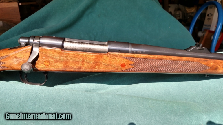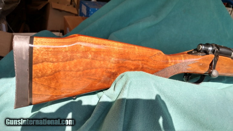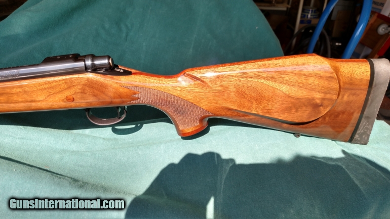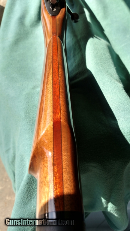 Description: Remington .416 Mag, beautiful custom shop wood stock with dual-graphite layers running full length of stock for rigidity and strength, seldom seen because it was to expensive for Remington to make, 24 inch barrel toppped of with a screw-off Sam Johnson "Quiet Brake"... can't buy this one anymore, probably the best brake ever made... Decelerator pad, shoots very softly. Special order Safari rear sight with large white bead front sight. This is one you will be proud to own and even more to hunt with. SOLD |