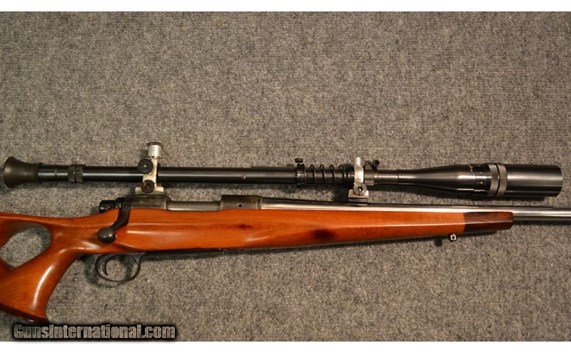 Description: Custom Remington model 700 chambered in .17 Remington. This is a custom-built gun from an older receiver. Builder re-barrelled the action with a high end polished stainless steel Remington barrel. The custom thumbhole stock is very nice with only minor handling marks. The addition of a J. Unertl scope is a great match for the caliber. These are micro adjustable scopes, look great and offer exceptional precision. Overall a great build for target or varmints. 17 Remington SOLD Chambers: 1 Metal Condition: "Good, handling marks, bluing is wearing Wood Condition: "Very Good, minor handling marks Bore Condition: Excellent Barrels: 24 Triggers: Steel Stock Dimensions: 13 3/4" LOP Fore End: Smooth Butt Pad: Rubber Weight: 9 1/2 lbs Sights: J. Unertl precision scope Item Location: Thornton, CO |