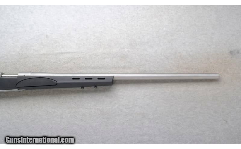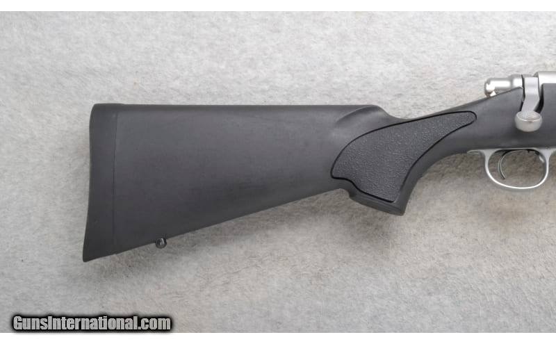 Description: This Remington Model 700 is a right hand bolt action rifle in .204 Ruger Cal. It has a 26 inch matte finish stainless steel barrel. It is drilled and tapped for a scope mount. No iron sights. The butt stock is a textured grip black polymer pistol grip with a raised cheekpiece. The forearm is a textured grip black polymer and has side vent holes. .204 Ruger SOLD Chambers: Internal magazine with a hinged floorplate. Metal Condition: Very Good. Bore Condition: Excellent. Barrels: 26 inch matte stainless steel. Stock Dimensions: LOP 13 1/4 inches. Fore End: Textured grip black polymer. Side vent holes. Butt Pad: Remington black rubber recoil pad. Weight: 8 lb. 8 Oz. Sights: Drilled and tapped for a scope mount. No iron sights. Item Location: Richfield, WI |