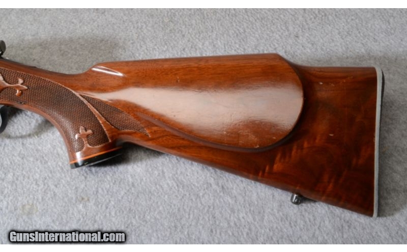 Description: SOLD Caliber Info: .22-250 Rem. Metal Condition: Original finish worn thin near end of barrel with light handling and use marks. Wood Condition: Several areas of light to moderate handling and use marks especially right hand side of stock. Bore Condition: Bright with sharp lands. Barrels: 24 Weight: 7 LB Item Location: Mitchell, SD |