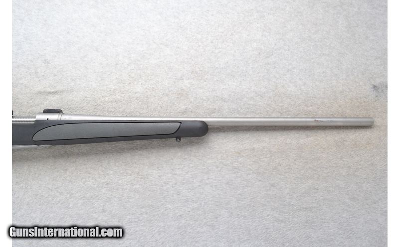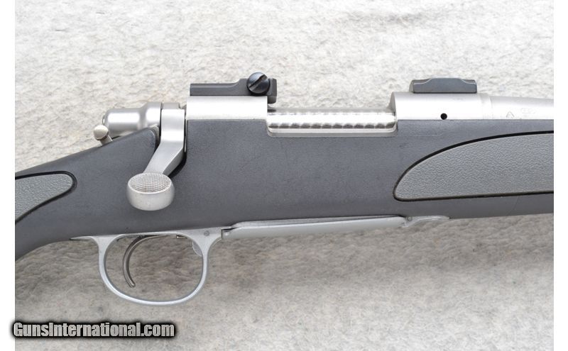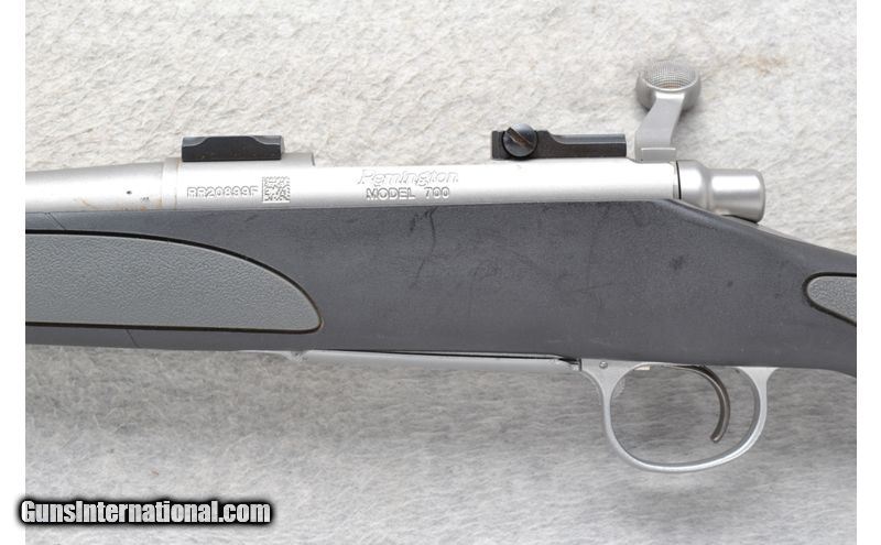 Description: This Remington Model 700 is a stainless steel right hand bolt action rifle in .22-250 Rem. Cal. It has a 24 inch barrel. Scope mount bases attached. No iron sights. The stock is a black polymer pistol grip with a raised cheekpiece and grey rubber grip ins .22-250 Remington SOLD Item Location: Lexington, KY |