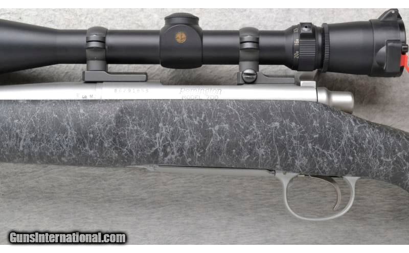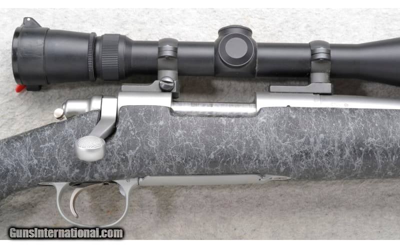 Description: This Remington Model 700 is a right hand bolt action rifle in .22-250 Rem. Cal. It has a 26 inch fluted matte stainless steel barrel. It is outfitted with a Leupold Scope. The butt stock is a black polymer pistol grip with grey webbing. The forearm is a black polymer with grey webbing and comes with a Bi-Pod. .22-250 Remington SOLD Chambers: Internal magazine with a hinged floorplate. Metal Condition: Excellent. Bore Condition: Excellent. Barrels: 26 inch fluted matte stainless steel. Stock Dimensions: LOP 13.5 inches. Fore End: Black polymer with grey webbing. Bi-Pod. Butt Pad: Remington black rubber pad. Weight: 10 lb. 12 oz. Sights: Leupold VARI-X III 6.5x20 Scope. Item Location: Richfield, WI |