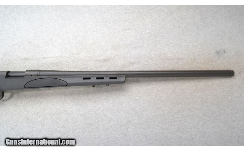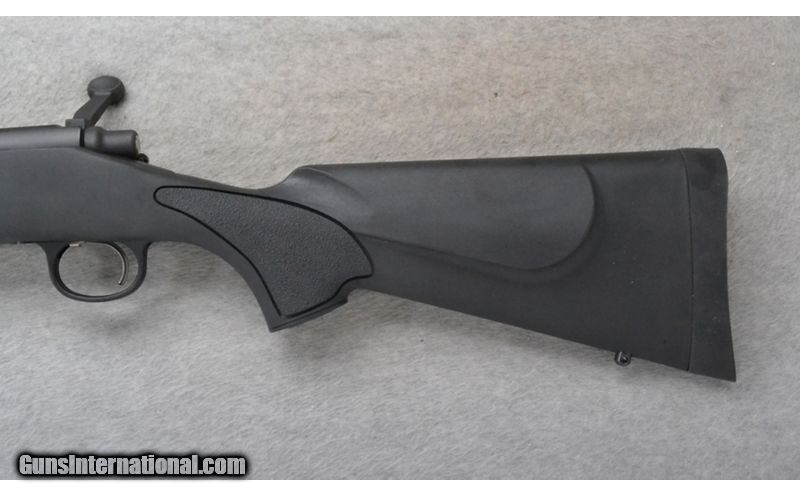 Description: This Remington Model 700 is a right hand bolt action black polymer rifle in .223 Rem. Cal. It has 26 inch matte black barrel. It is drilled and tapped for a scope mount. No iron sights. The butt stock is a textured grip black polymer pistol grip with a raised cheekpiece. The forearm is a textured grip black polymer with side vent holes. It has a Remington X-Mark Pro Trigger. The bolt handle is checkered. .223 Remington SOLD Chambers: Internal magazine. Metal Condition: Excellent. Bore Condition: Excellent. Barrels: 26 inch matte black. Triggers: Remington X-Mark Pro Trigger. Stock Dimensions: LOP 13 1/4 inches. Fore End: Textured grip black polymer with side vent holes. Butt Pad: Remington black rubber recoil pad. Weight: 8 lb. 10 oz. Sights: Drilled and tapped for a scope mount. No iron sights. Item Location: Richfield, WI |