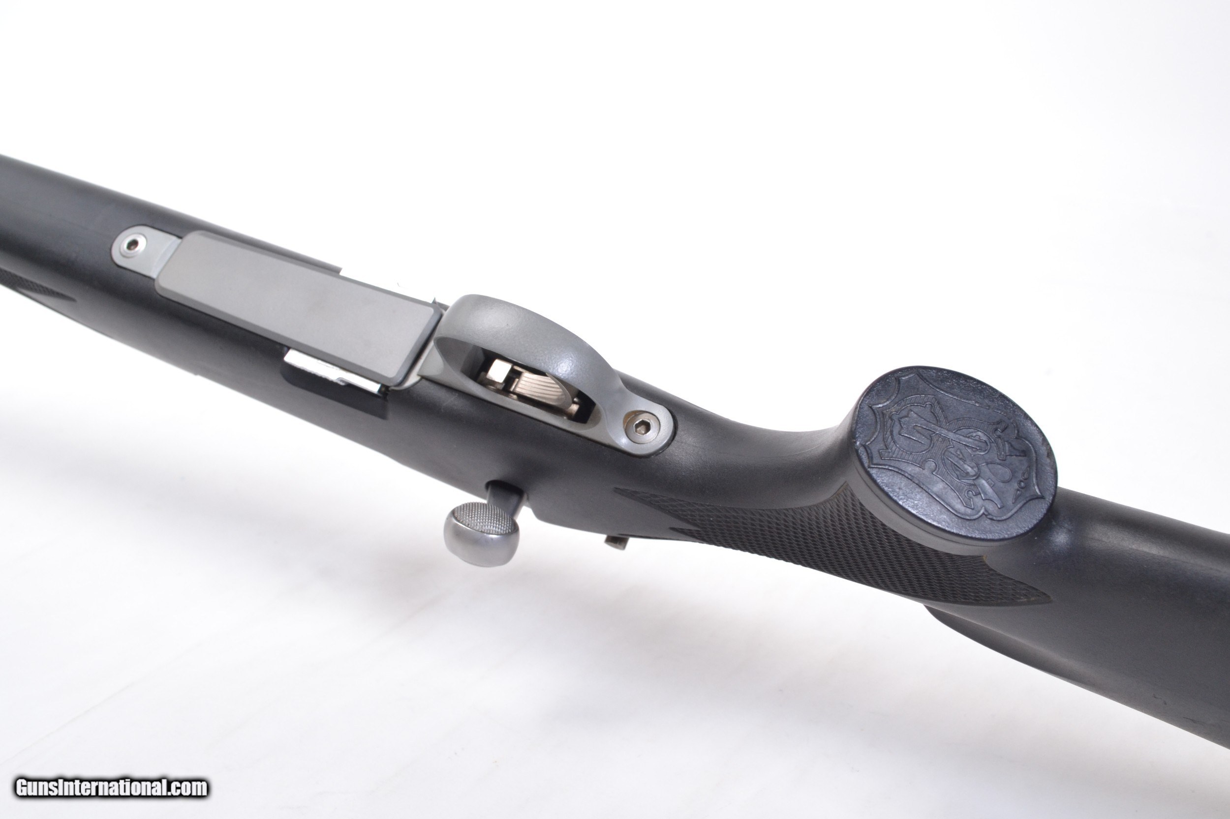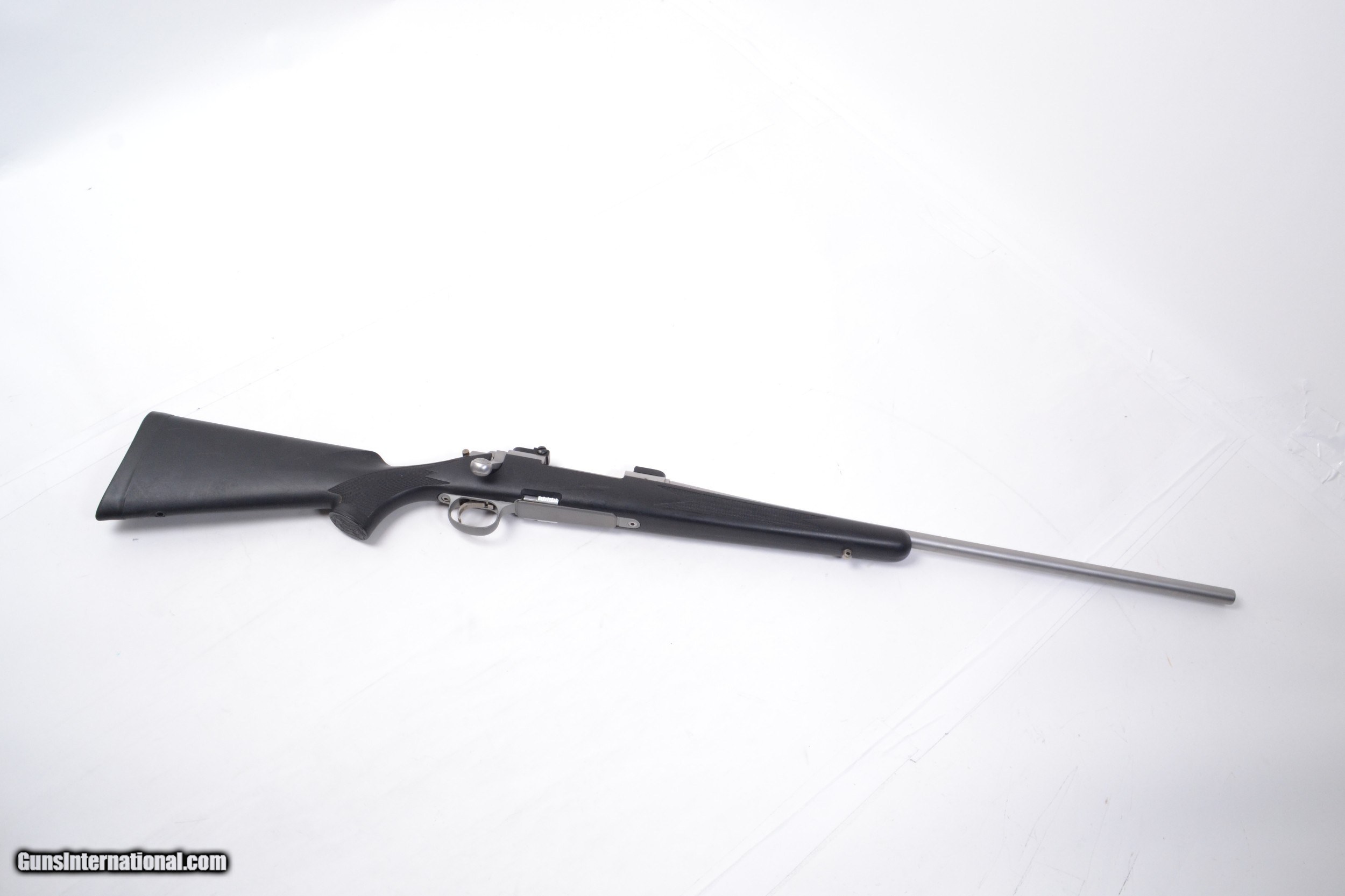 Description: Remington - 700, 24” 30-06, satin finish, black synthetic stock, detachable stainless steel magazine, jeweled bolt, 99% condition, appears unfired. Available for immediate delivery. $50 S&H. Inv# 44365 7 lbs. 2 oz. 13 ½” LOP $599.00 SOLD |
