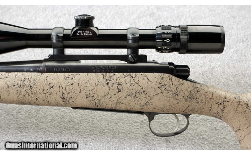 Description: The proven Remington Model 700 has all the features you need for successful hunting. The Model 700's proven trigger helps produce exceptional accuracy. The barrel and receiver are a polished deep blue finish. The composite stock should provide good accuracy and stability in weather. Manufactured 1988. Please call Cabela's Lehi, Utah Gun Library directly (801)766-2521. .243 Winchester SOLD Metal Condition: Very good with some scratches and some finish wear Bore Condition: "Excellent, bright and sharp Barrels: 22 inch barrel Triggers: Adjustable trigger Stock Dimensions: 13 1/2 inch LOP Butt Pad: Decelerator pad Weight: 8 lbs. 5 oz. Sights: Bushnell Banner 3-9x scope. Open sights have been removed Item Location: Lehi, UT |