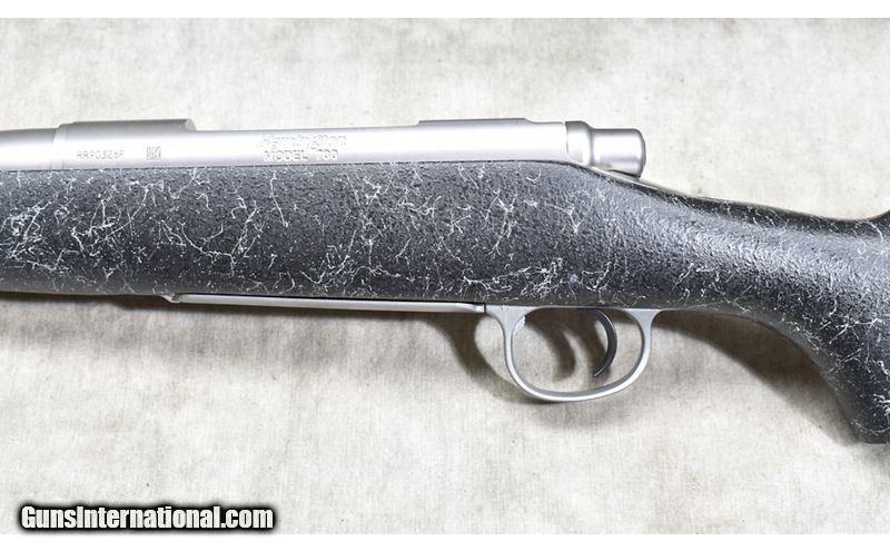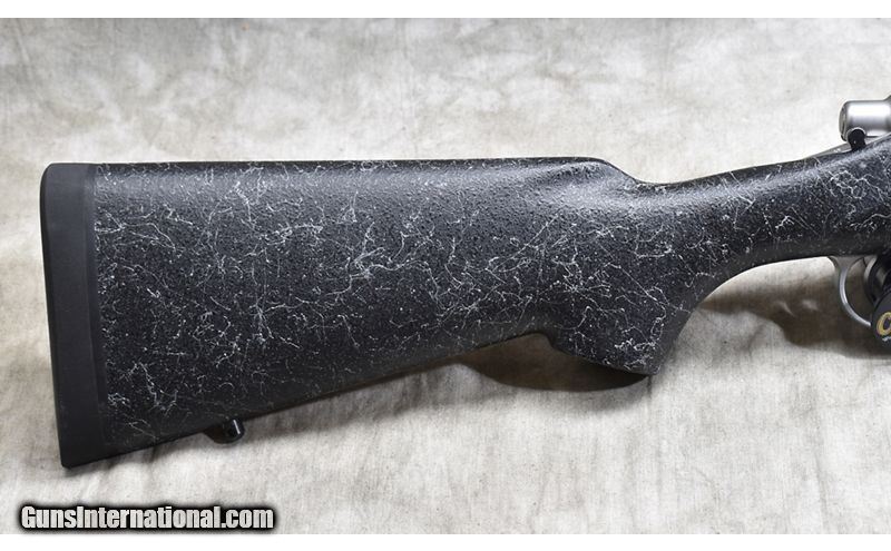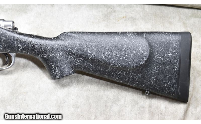 Description: Dark grey spiderweb synthetic stock, satin stainless steel metalwork, and jeweled bolt are all features of this lightweight bolt action rifle. .25-06 Remington SOLD Chambers: 4 Metal Condition: Excellent. Wood Condition: Excellent. Bore Condition: Shiny and bright. Barrels: 22-inch Triggers: Factory trigger. Stock Dimensions: 13-1/4 inch LOP. Butt Pad: Soft and thick rubber pad. Weight: 6 lb - 6 oz. Sights: Drilled and tapped for scope. Item Location: Rogers |