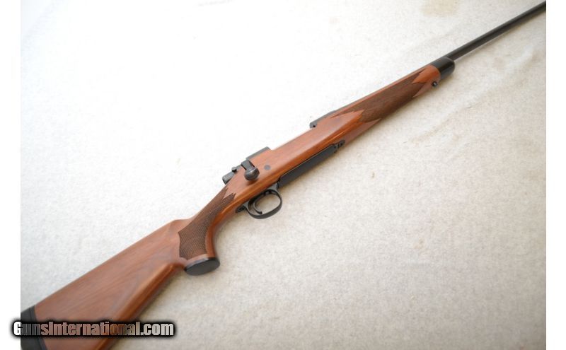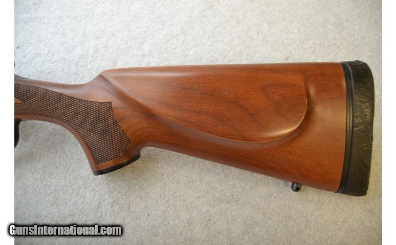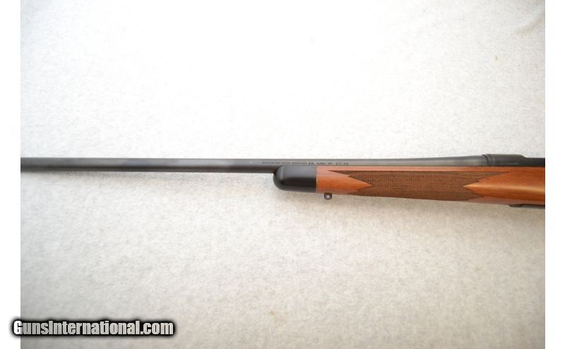 Description: Overall condition of this rifle is very good. The metal is in very good shape with the exception being where the scope bases were formally mounted. This area has some minor surface corrosion (see pictures). The wood is also in very good condition with only minor evidence of handling. The buttpad is mildly worn but is still soft. The bore is excellent with bright shine and healthy rifling. SOLD Caliber Info: .270 Winchester Chambers: Bolt-action fed from an internal magazine with a hinged floor plate. Metal Condition: Good. Wood Condition: Good. Bore Condition: Excellent. Barrels: 24" With satin bluing. Triggers: Wide matte blued metal with grooved surface. Stock: Walnut with cheek rest and diamond pattern checkered grip areas. Black wood grip cap. Stock Dimensions: 13 1/2" LOP Fore End: Walnut with wrap around diamond pattern checkering and a black wood cap. Butt Pad: Black rubber. Weight: 7lbs Sights: No iron sights. Comes drilled and tapped for scope bases. Item Location: Green Bay, WI |