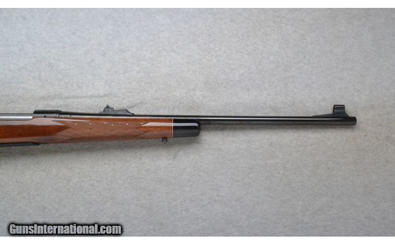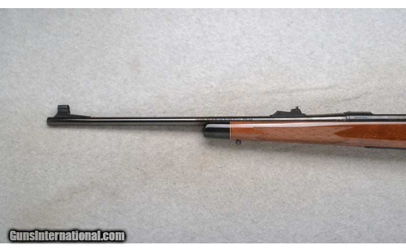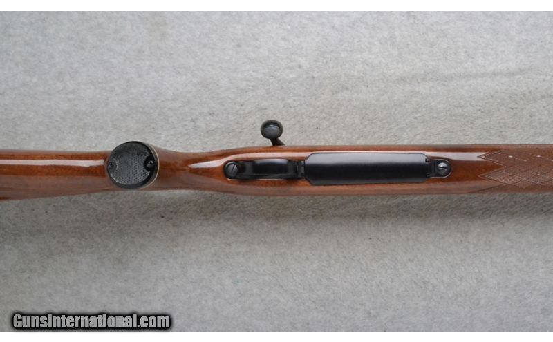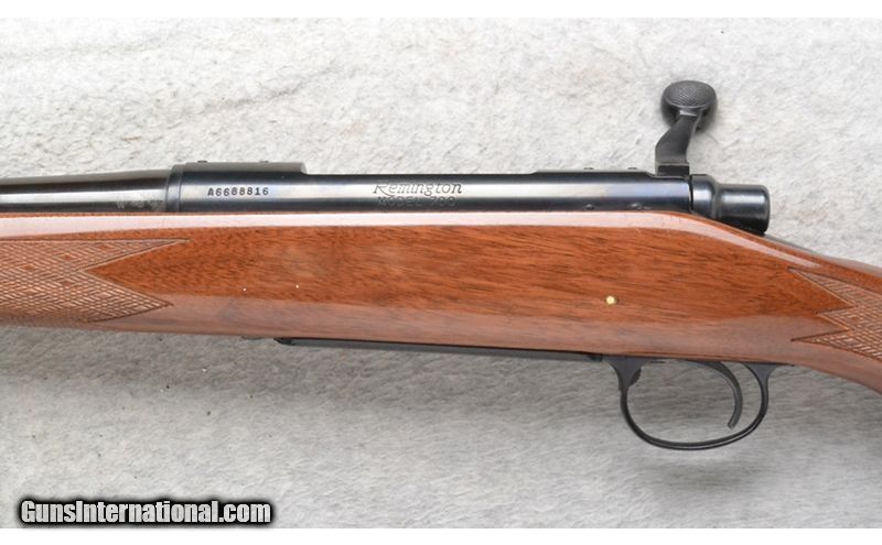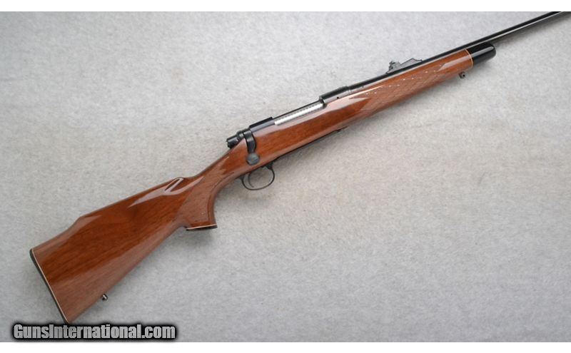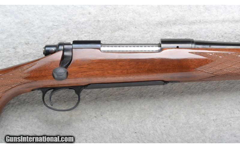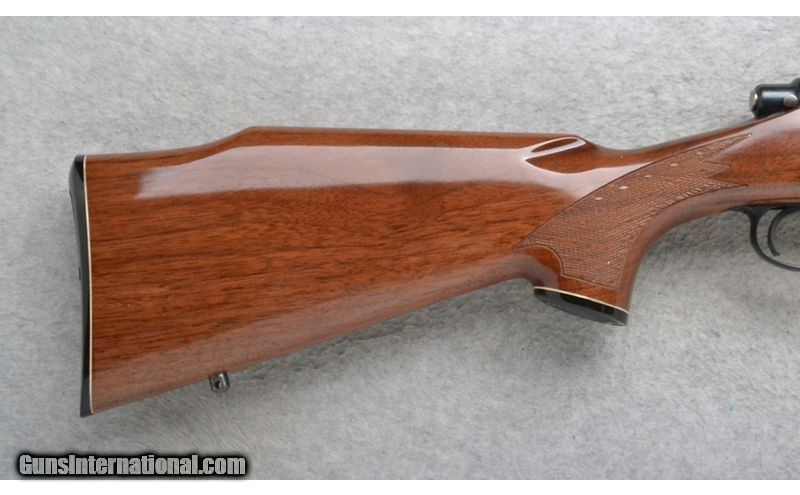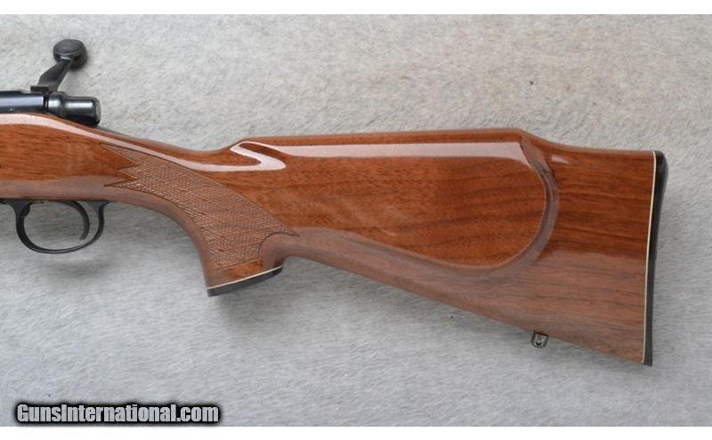 Description: This Remington Model 700 is a right hand bolt action rifle in .270 Win. Cal. It has a 22 inch barrel. A hooded front blade sight and an adjustable notch middle sight. It is drilled and tapped. The butt stock is a diamond checkered grip walnut pistol grip with a raised cheekpiece. The forearm is a diamond checkered grip walnut with a black tip. The bolt is jeweled and the bolt handle is checkered. .270 Winchester SOLD Chambers: Internal magazine with a hinged floorplate. Metal Condition: Excellent. Wood Condition: Excellent. A couple of minor handling marks. Bore Condition: Excellent. Barrels: 22 inch. Stock Dimensions: LOP 13 1/4 inches. Fore End: Diamond checkered grip walnut with a black tip. Butt Pad: Checkered black plate. Weight: 7 Lbs. 9 Oz. Sights: Hooded front blade. Adjustable notch middle. Drilled and tapped. Item Location: Richfield, WI |