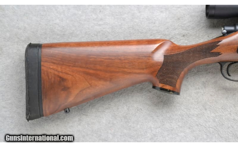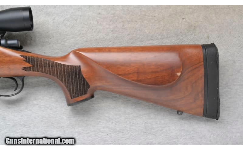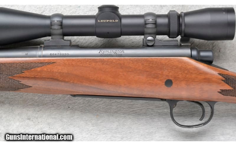 Description: This Remington Model 700 is a right hand bolt action rifle in .270 Win. Cal. It has a 24 inch barrel. It is outfitted with a Leupold VX-II 3-9x40mm Scope. The butt stock is a checkered grip walnut pistol grip with a raised cheekpiece and black cap. The forearm is a checkered grip walnut with a black tip. It has a jeweled bolt and checkered bolt handle. .270 Winchester SOLD Chambers: Internal magazine with a hinged floorplate. Metal Condition: Excellent. Wood Condition: Good. Some handling/use marks. Bore Condition: Excellent. Barrels: 24 inch. Stock Dimensions: LOP 13 1/4 inches. Fore End: Checkered grip walnut with a black tip. Butt Pad: LimbSaver black rubber recoil pad in poor condition. Weight: 7 lb. 12 oz. Sights: Leupold VX-II 3-9x40mm Scope. Item Location: Richfield, WI |