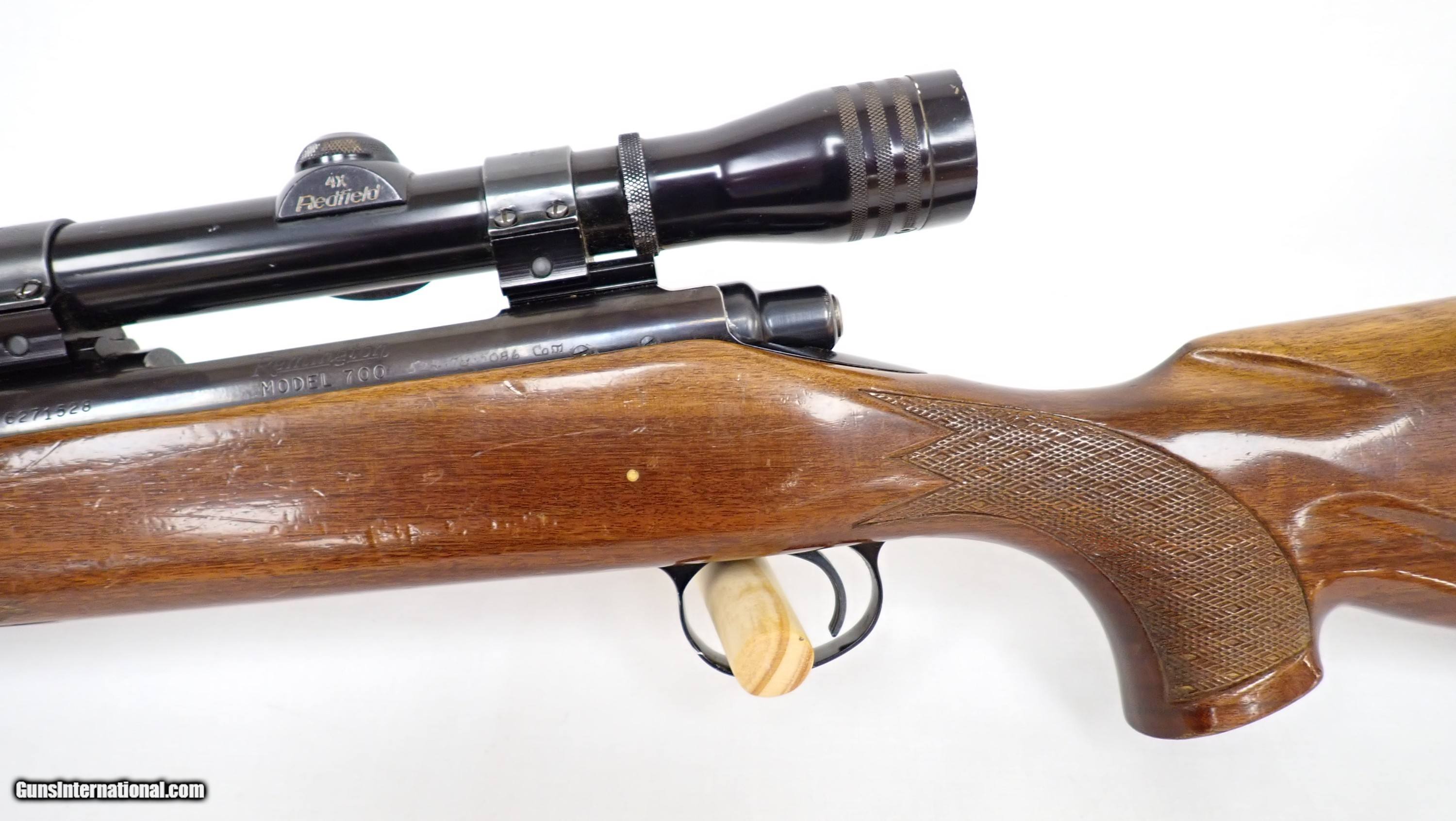 Description: Up for sale today is a Remington 700 chambered in 270 win. The bore is bright and the rifling is sharp. The stock shows noticeble cosmetic wear as does the bolt and blued parts. This rifle features period correct weaver rings securing a vintage redfield 4x scope. Length of pull is 14 and 1/4 inches with a 22 inch barrel. SOLD Rifle Caliber: .270 Winchester Manufacturer: Remington Model: 700 Serial Number: 6271528 Barrel Length: 22 |