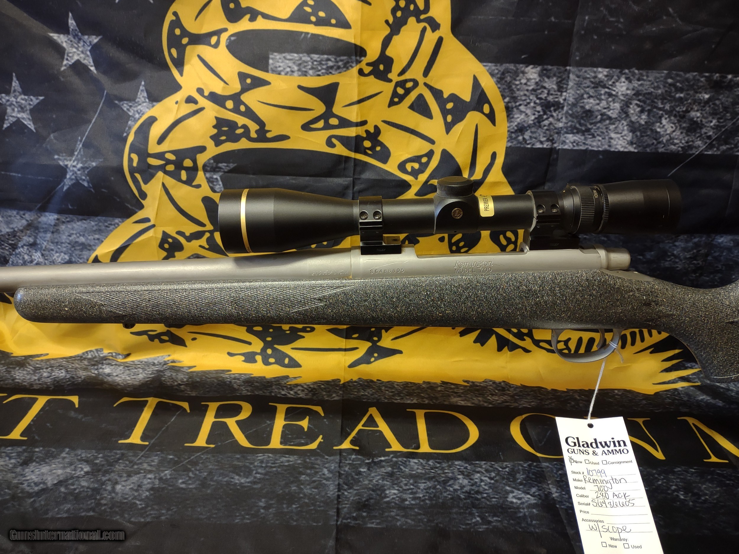 Description: Remington 700 280 Ackley Improved bolt action rifle with Leupold scope. Grey Synthetic Stock. Minor scratches on barrel. CUSTOM BUILT BY BULL MOUNTAIN RIFLE CO. SOLD Rifle Caliber: .280 Ackley Improved Manufacturer: Remington Model: 700 Serial Number: S6486605 Barrel Length: 26 Condition: Used Action: Bolt Action Finish: Stainless Steel |