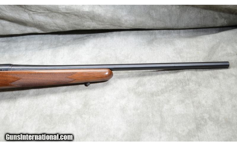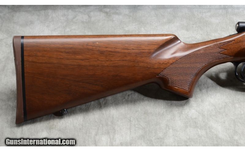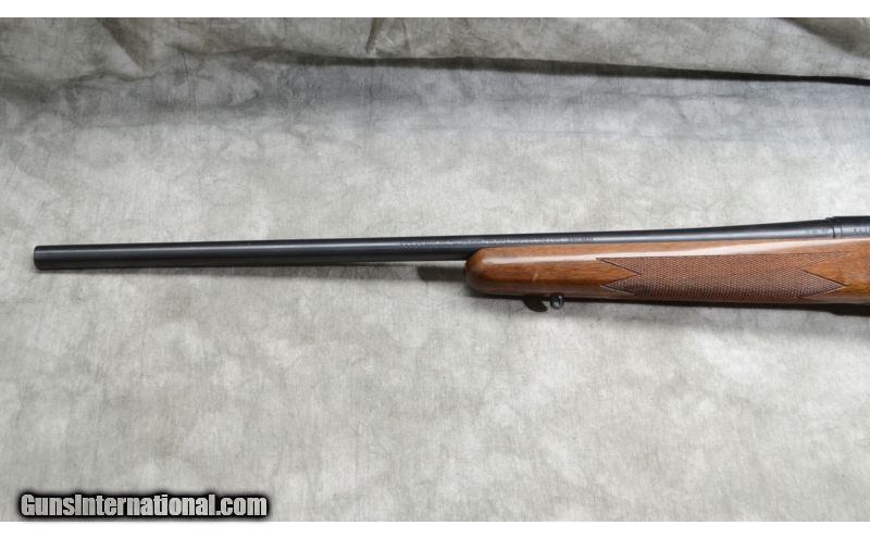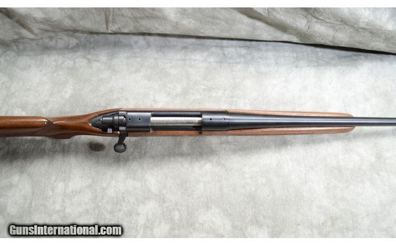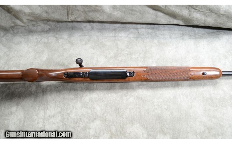 Description: This rifle features nice walnut stock, internal magazine with hinged floor plate, jeweled bolt and knurled knob. The 22 inch barrel is drilled and tapped for scope. SOLD Caliber Info: .280 Remington Chambers: 3 round internal magazine with hinged floor plate. Metal Condition: Very good. Blue is good overall and minimal handling marks. Wood Condition: Very good. Shows a bit of handling. Bore Condition: Shiny and bright with good rifling. Barrels: 22 Inch - blue, without sights. Triggers: Factory trigger. Stock: Checkered walnut with pistol grip Stock Dimensions: 13 - 3/8 inch LOP. Butt Pad: Rubber pad. Weight: 7 lb. - 1 oz. Sights: Drilled and tapped for your choice of scope. Item Location: Rogers,, MN |