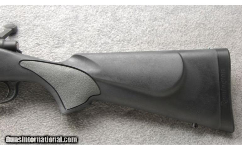 Description: This nice Remington has been fired a little but not much from the looks of it. If you are in the market for a good hunting rifle this would be a good one. This rifle has had the trigger recall compleated. SOLD Caliber Info: .30-06 Chambers: Bolt action repeater. Metal Condition: As new. Wood Condition: The stock looks like new. Bore Condition: Bright and shiny. Barrels: 24' Matte black without sights. Triggers: Single. Stock: Black synthetic with textured inserts along with a pistol grip. Stock Dimensions: 13 1/4' LOP. Butt Pad: Remington soft rubber butt pad. Weight: 6 LBS 10 OZ. Sights: Drilled and tapped for scope mounts. Extras: Comes with te box and factory paperwork. Item Location: Owatonna, MN |