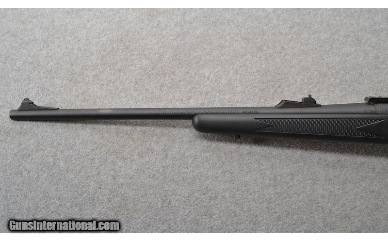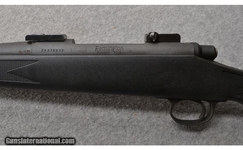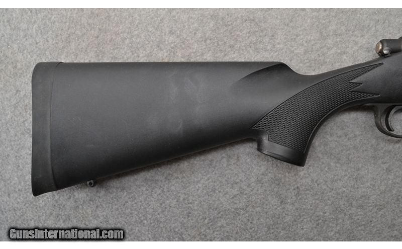 Description: Remington 700 in .30-06 Springfield. A 22' barrel sits on an all synthetic stock and fore end. Rear sights on barrel are adjustable for elevation and windage. Elevated front sight with white dot. This firearm is also drilled and tapped for optics, with Leupold style bases already mounted. Bore is shiny with solid rifling. Bluing is good throughout with a couple of rub marks near the end of barrel that have rubbed through to the metal. Light patina noted about the receiver and on the bolt handle. .30-06 Springfield SOLD Metal Condition: Barrel and receiver in good condition. Some handling marks noted throughout. Rub mark near the end of the barrel does go through the bluing. Light patina noted on the receiver and bolt handle. Wood Condition: "StartFragment Black synthetic checkered pistol grip stock and checkered for end. A few light handling marks, most notably near the receiver. Stock is in good condition. EndFragment Bore Condition: Bore is bright and shiny with solid rifling. Barrels: 22" barrel. Triggers: Grooved trigger. Stock Dimensions: 13" LOP Fore End: Black synthetic checkered pistol grip stock and checkered fore end. Butt Pad: Factory black rubber recoil pad. Weight: 7 lb - 4 oz Sights: Rear steel sight adjustable for elevation and windage. Front elevated sight with white dot. Drilled and tapped for optics with Leupold type two-piece bases installed. Item Location: Mitchell, SD |