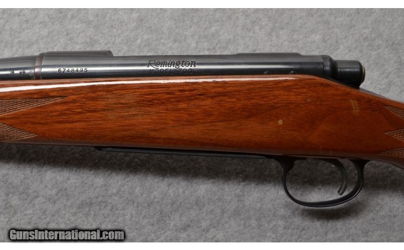 Description: Remington model 700 BDL .30-06 Springfield, 22 inch barrel, with factory fully adjustable rear sight and ramp front blade with sight hood. The bore is bright with strong rifling. Some copper fouling is present. Action has some light blue wear. Barrel shows some blue thinning at the muzzle along with a few light scratches, though none are through the finish. The checkered stock and fore end have some light handling marks, dings, and scratches. There are a couple of spots where the varnish has flaked off. SOLD Caliber Info: .30-06 Sprg. Metal Condition: Action has some light blue wear. Barrel shows some blue thinning at the muzzle along with a few light scratches. None are through the finish. Wood Condition: The checkered stock and fore end have light handling marks, dings, and scratches. There are a couple of spots where the varnish has flaked off. Bore Condition: Bright bore with strong rifling, though some copper fouling is present. Barrels: 22 inch barrel. Triggers: Grooved trigger. Stock: Checkered pistol grip stock and fore end. Stock Dimensions: 13 3/8 inch LOP Fore End: Checkered pistol grip stock and fore end. Butt Pad: Factory black plastic butt plate. Weight: 7 lbs. 11 oz. Sights: Factory rear sight adjustable for elevation and windage. Ramp front blade sight with hood. Drilled and tapped for optic sight. Item Location: Mitchell, SD |