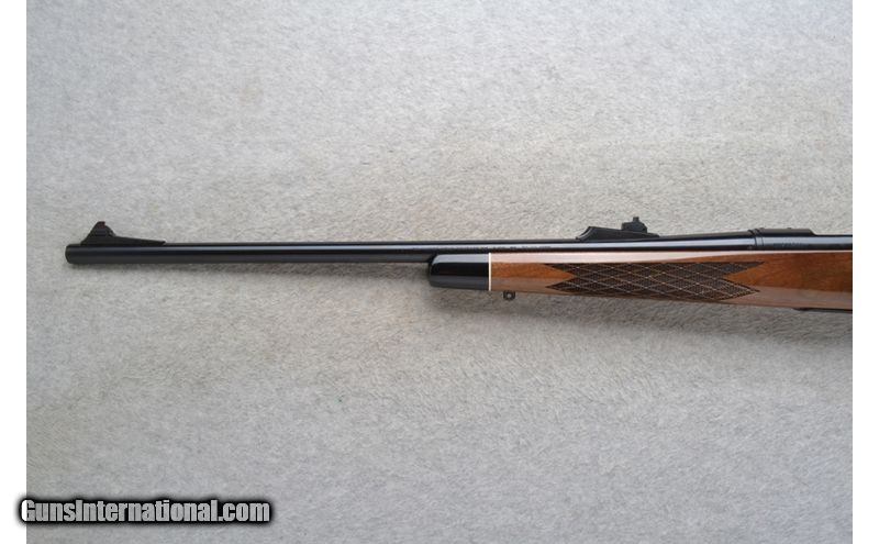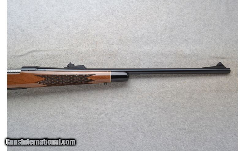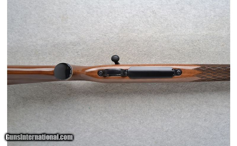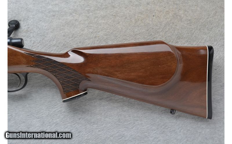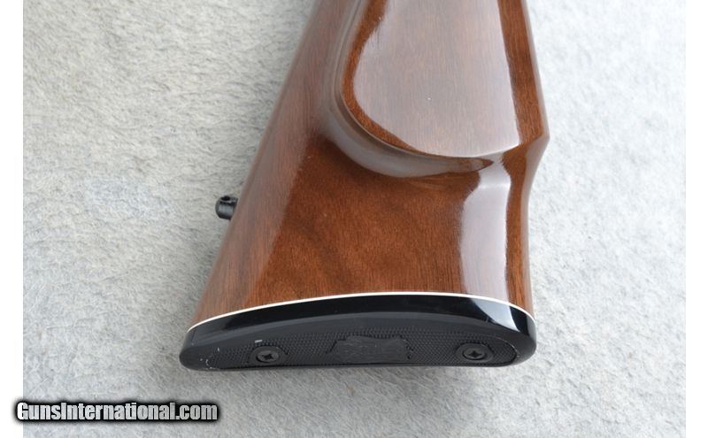 Description: This Remington Model 700 BDL is a right hand bolt action rifle in .30-06 Sprg. Cal. It has a 22 inch barrel. A raised blade front sight and adjustable notch middle sight on a ramp. It is drilled and tapped for a scope mount. The butt stock is a diamond checked grip walnut pistol grip with a raised cheek piece and black cap. The forearm is a diamond checkered grip walnut with a black tip. The bolt is jeweled and the bolt handle is checkered. .30-06 Springfield SOLD Chambers: Right hand bolt action 4 round internal magazine with a hinged floorplate. Metal Condition: Excellent. Wood Condition: Excellent with some very minor handling marks especially on the pistol grip cap. Bore Condition: Excellent. Barrels: 22 inch. Stock Dimensions: LOP 13 3/8 inches. Fore End: Diamond checkered grip walnut with a black tip. Butt Pad: Remington checkered black plate. Weight: 6 lb. 15 oz. Sights: Raised blade front. Adjustable notch middle on a ramp. Drilled and tapped. Item Location: Richfield, WI |