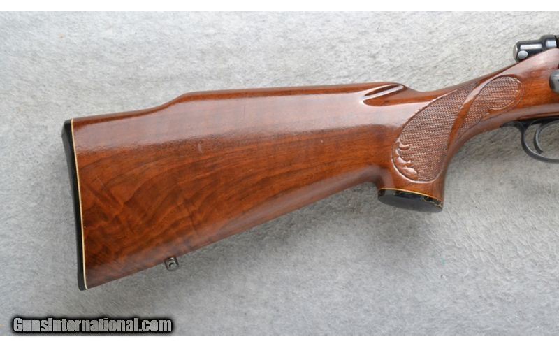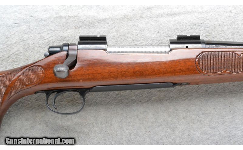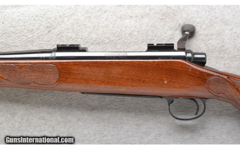 Description: This Remington Model 700 is a right hand bolt action rifle in .30-06 Sprg. Cal. It has a 22 inch barrel. Scope mount bases are attached. No iron sights. The butt stock is a checkered grip walnut pistol grip with a black cap. The forearm is a checkered grip walnut with a black tip. It has a jeweled bolt and checkered bolt handle. .30-06 Springfield SOLD Chambers: Internal magazine with a hinged floorplate. Metal Condition: Very Good. Wood Condition: Good. Handling/use marks. Bore Condition: Very Good. Barrels: 22 inch. Stock Dimensions: LOP 13 1/2 inches. Fore End: Checkered grip walnut with a black tip. Butt Pad: Remington checkered black plate. Weight: 7 Lb. 3 Oz. Sights: Scope mount bases are attached. No iron sights. Item Location: Richfield, WI |