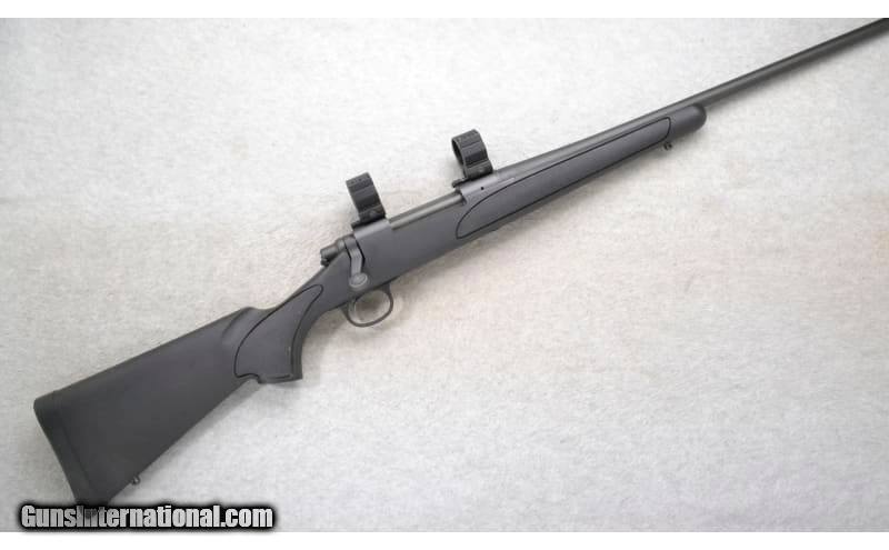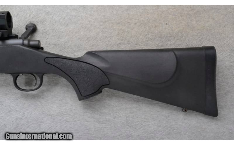 Description: This Remington Model 700 is a right hand bolt action rifle in .30-06 Sprg. Cal. It has a 24 inch barrel. Scope rings are attached. No iron sights. The butt stock is a textured grip black polymer pistol grip with a raised cheekpiece. The forearm is a textured grip black polymer. The bolt handle is checkered. .30-06 Springfield SOLD Chambers: Internal magazine. Metal Condition: Excellent. Bore Condition: Excellent. Barrels: 24 inch. Stock Dimensions: LOP 13 1/4 inches. Fore End: Textured grip black polymer. Butt Pad: Remington SuperCell black rubber recoil pad. Weight: 7 lb. 0 oz. Sights: Scope rings attached. No iron sights. Item Location: Richfield, WI |