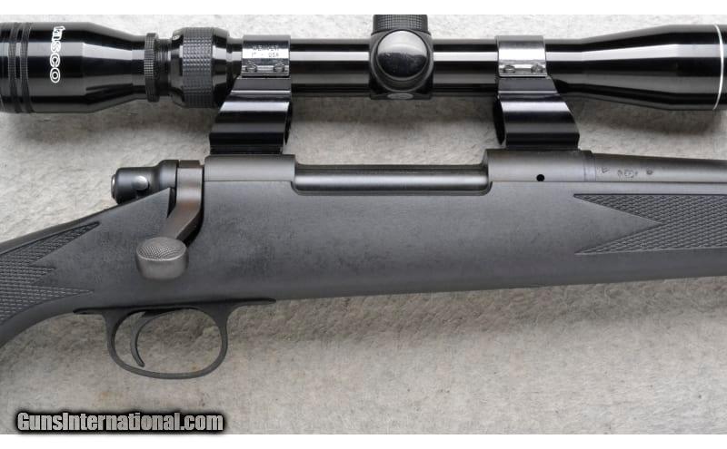 Description: This Remington Model 700 is a right hand bolt action rifle in .30-06 Sprg. Cal. It has a 22 inch barrel. A raised blade front sight and an adjustable notch middle sight. It is outfitted with a Tasco Scope on a see through mount. The butt stock is a checkered grip black polymer pistol grip with a raised cheekpiece. The forearm is a checkered grip black polymer. .30-06 Springfield SOLD Chambers: Internal magazine. Metal Condition: Good. Barrel has some light freckling. Bore Condition: Excellent. Barrels: 22 inch. Stock Dimensions: LOP 13 1/4 inches. Fore End: Checkered grip black polymer. Butt Pad: Remington black rubber pad. Weight: 8 Lb. 0 Oz. Sights: Raised blade front. Adjustable notch middle. Tasco Pronghorn 3-9 Scope. Item Location: Richfield, WI |