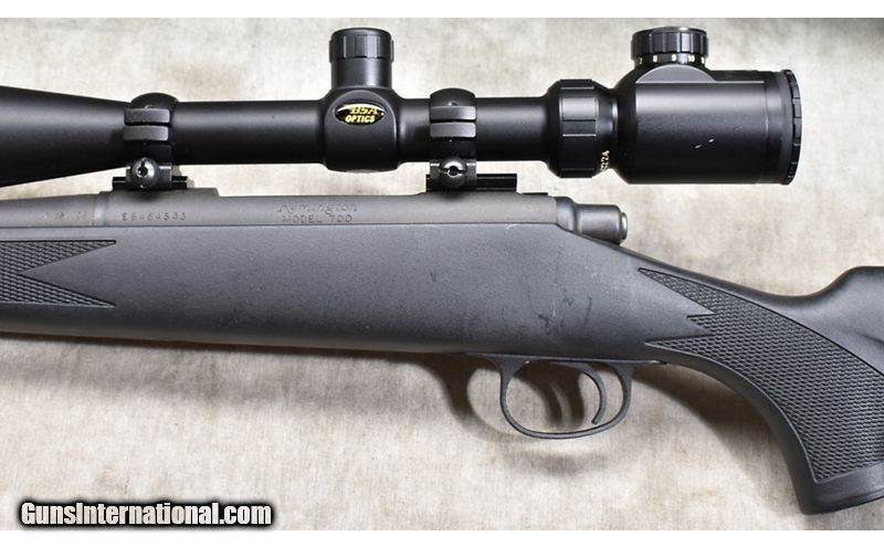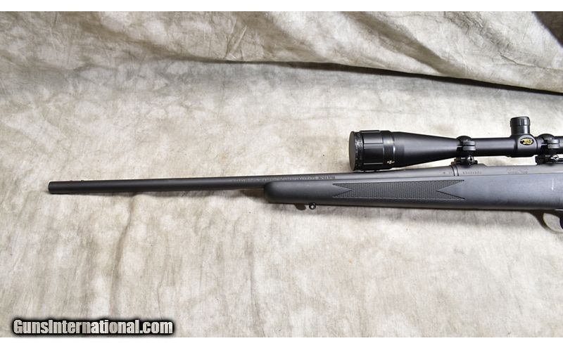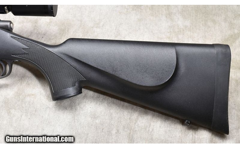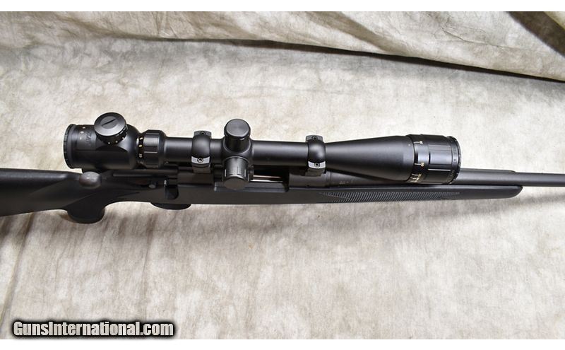 Description: Nice long-range black synthetic rifle with scope, ready for the range or the woods. .30-06 Springfield SOLD Chambers: 4 Metal Condition: Very good. Wood Condition: Very good. Bore Condition: Shiny and bright with good rifling. Barrels: 22-inch Triggers: Factory trigger. Stock Dimensions: 13-1/4 inch Butt Pad: Soft rubber. Weight: 8 lb - 9 oz Sights: Drilled and tapped for open sights and optical sights. Outfitted with a BSA Optics 6-24x IR with Mil-Dot scope. Item Location: Rogers |