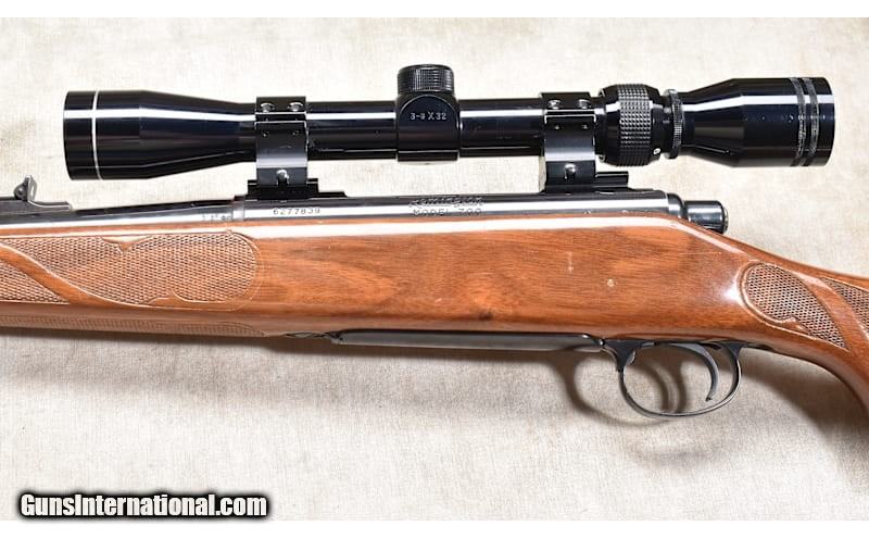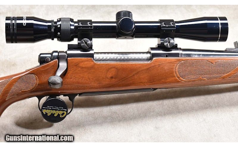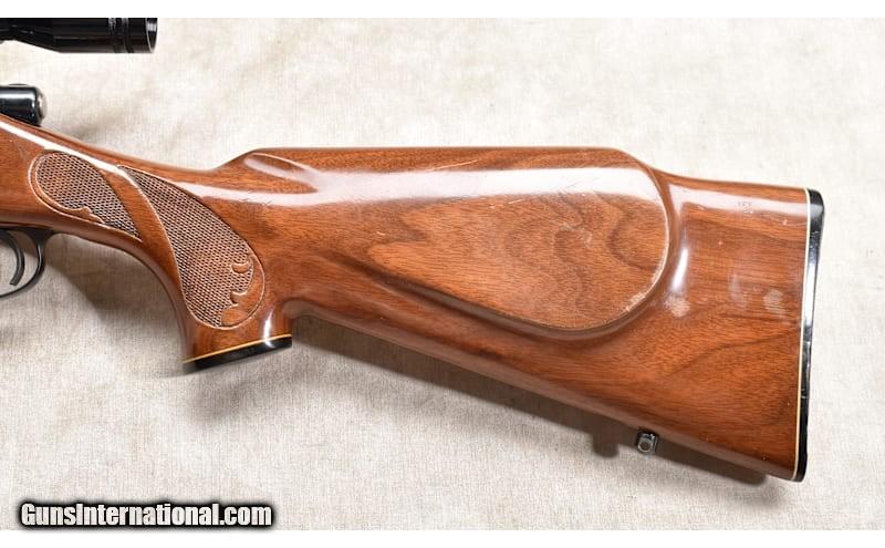 Description: This is an all-around good rifle for anyone who needs workhorse tool for hunting, farm and ranch defense, or casual target shooting. The features include BDL walnut Monte Carlo stock with cheek piece, black caps on the tip, grip, and butt. The bolt is jeweled, and it has an internal box magazine with hinged floor plate. .30-06 Springfield SOLD Chambers: 4 rounds Metal Condition: Very good. Rear sight elevator wedge missing. Wood Condition: "Good to very good. There are handling marks and scratches. None are particularly severe, just there. Bore Condition: A little dark but shiny with good rifling. Barrels: 22 inches Triggers: Factory trigger. Stock Dimensions: LOP: 13-1/4 inches Fore End: "Black tip, grip, and butt caps. Butt Pad: Black synthetic plate Weight: 8 lb - 1 oz incl scope Sights: "Hooded bead and notch open sights, drilled and tapped for scope, outfitted with a TASCO 3-9x scope. Item Location: Rogers |