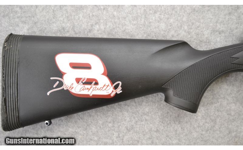 Description: Remington Model 700 Dale Earnhardt Jr edition .30-06 Springfield, 22 inch round barrel, drilled and tapped for scope. The bore is bright with strong rifling. The action and barrel in excellent condition. The bolt has a few light rub marks. The black synthetic stock and fore end have a few light rub marks. Factory black rubber Limb Savor recoil pad is malformed. At some point the recoil pad was exposed to heat. SOLD Caliber Info: .30-06 Springfield Metal Condition: Action and barrel in excellent condition. The bolt handle has a few light rub marks. Wood Condition: The black synthetic stock and fore end have a few light rub marks. Bore Condition: Bright bore with strong rifling. Barrels: 22 inch barrel. Triggers: Grooved trigger. Stock: Factory black synthetic stock. Stock Dimensions: 13 1/2 inch LOP Fore End: Factory black synthetic stock. Butt Pad: Factory black rubber Limb Savor recoil pad. Weight: 7 lbs 8 oz Sights: Drilled and tapped for scope. Item Location: Mitchell, SD |